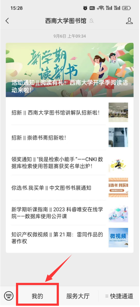 1.关注贝博艾弗森代言体育官网图书馆微信公众号(扫描下方二维码),绑定读者证(用户名为学号/教工号,密码为校园网办事大厅密码)。