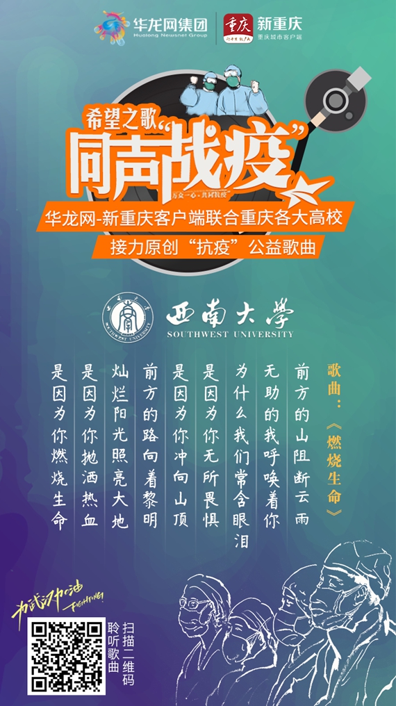 华龙网-新重庆客户端2月25日11时30分讯(李婷婷 刘春容)音乐汇聚力量,歌曲传递希望。新冠肺炎疫情以来,华龙网-新重庆客户端联合重庆市多所高校,接力原创“抗疫”公益歌曲,推出系列融媒体报道,重庆大学、贝博艾弗森代言体育官网、西南政法大学、重庆医科大学、重庆师范大学、重庆邮电大学、四川外国语大学、重庆理工大学、重庆第二师范学院等高校凝心聚力,用原创音乐记录身边的“战疫”事迹,用音视频向“抗疫”一线的“战士”致敬。
