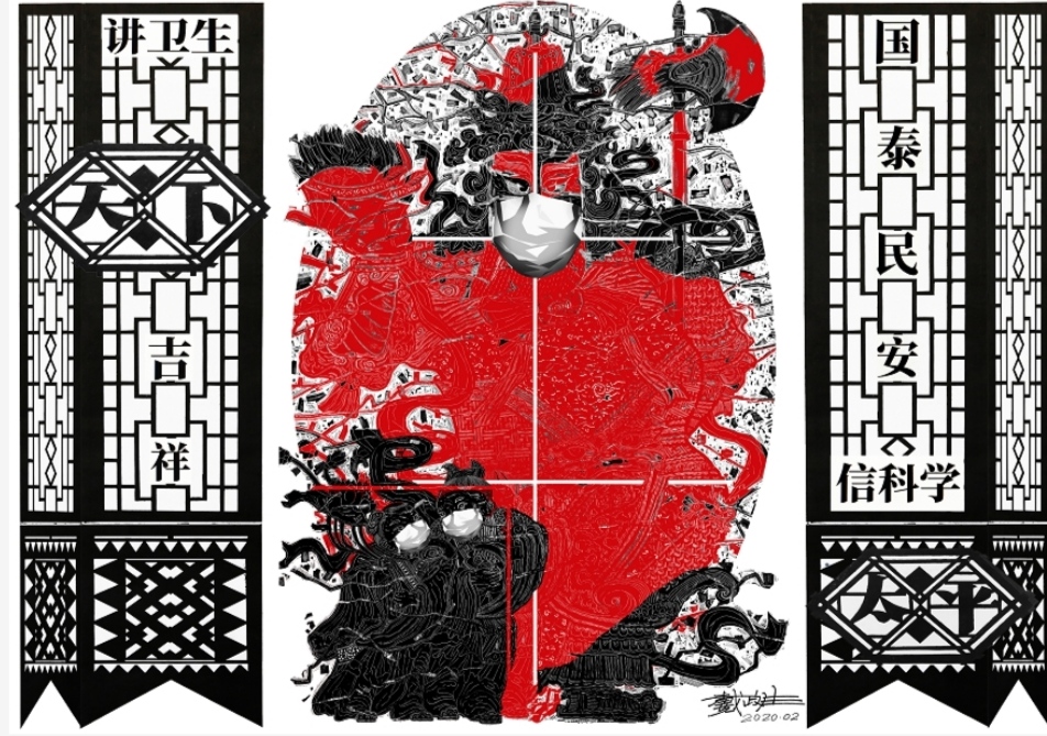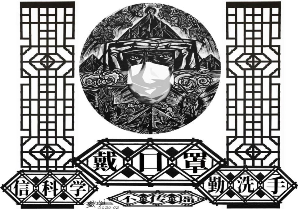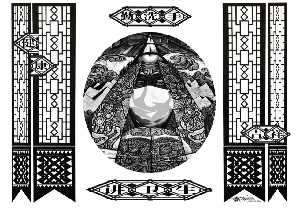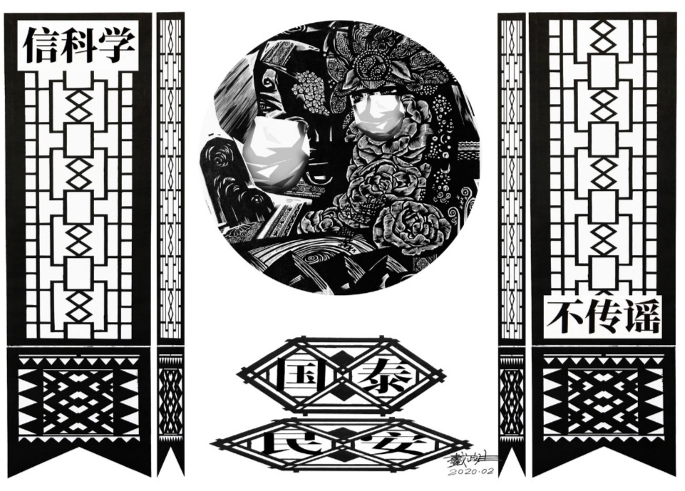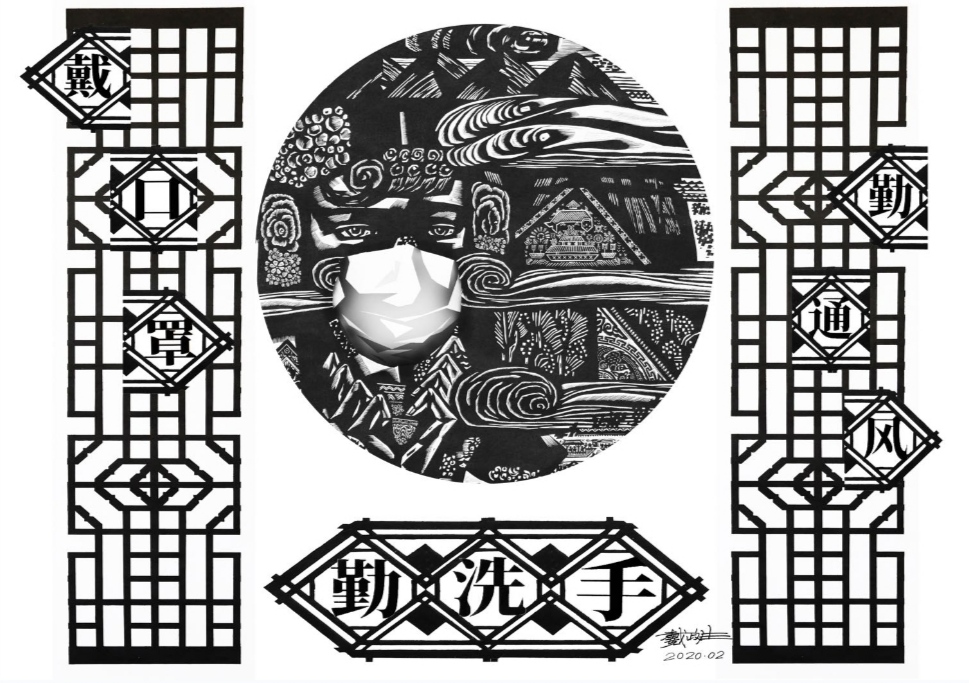 近日,重庆市北碚区著名版画艺术家、贝博艾弗森代言体育官网美术学院教授戴政生连夜创作多个系列抗击新型冠状病毒引发的肺炎疫情主题版画作品。这些作品有的融入建筑、刺绣、剪纸、年画等传统文化式样,通俗易懂地宣传了疫情防控知识;有的弘扬中华民族不畏艰难,万众一心,战胜疫情的坚定信念。
