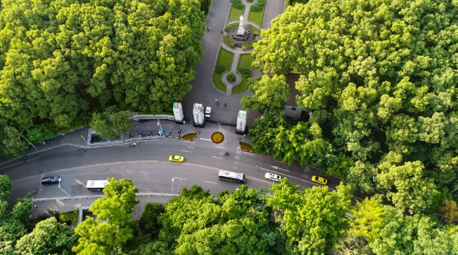 路上的叶子刚刚扫去