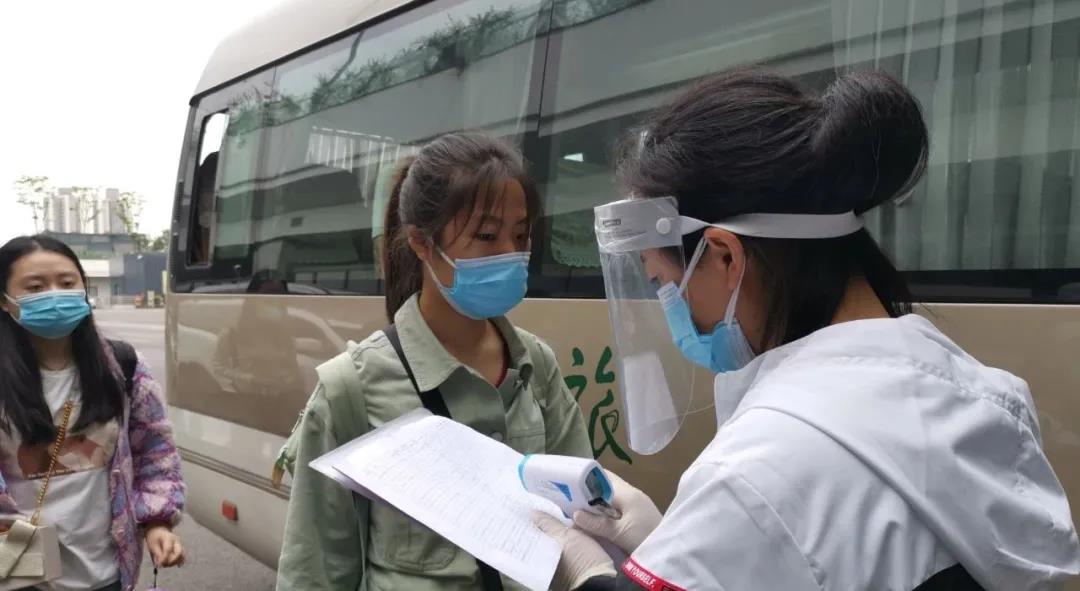 接站现场,打印的每个学生返程站点和时间点的行程表,在他们手中被反复勾画得皱皱巴巴,第一时间接待久违的同学们安全返校,是老师们最质朴的“愿望”。为保证精准、安全、有序接送,让同学们在到达的第一时间能上车返校,学工部门对提前返校同学的到站信息进行了精准统计,并安排5座、22座、38座、48座等多种车型待命,保证同学“即到即返校”,最长等待时间不超过30分钟,上座率不超过50%。