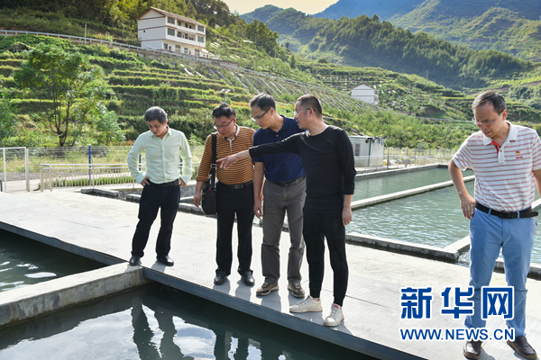 服务队调研冷水鱼养殖智能温控需求。新华网发(陈凌摄)