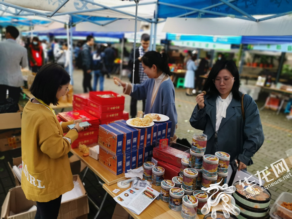 师生们在校园里就可以品尝、购买到正宗的来自大山深处的农特产品。华龙网-新重庆客户端记者 伊永军 摄