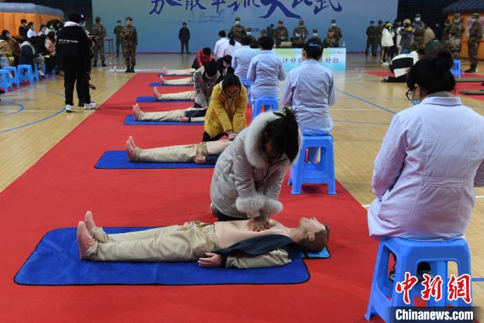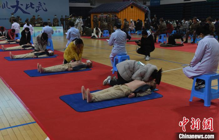 图为贝博艾弗森代言体育官网2020级本科生正在进行医疗自救互救技能比赛。 周毅 摄