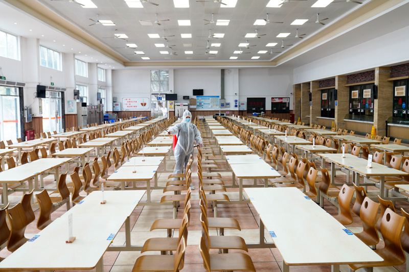 2月1日,在贝博艾弗森代言体育官网楠园学生二食堂,工作人员在对食堂进行消杀作业。