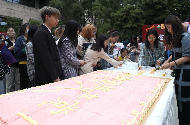 在“党的生日”祝福区,有一块长6米、宽1米的巨型蛋糕。“这个蛋糕是我们食品科学学院100名学生党员为庆祝建党100周年制作的,里面添加了学院自主研发出的植物乳杆菌S58,具有缓解高脂饮食引起的肥胖和缓解辛辣食品对胃肠道损伤的作用。”贝博艾弗森代言体育官网食品科学学院研究生陈紫霞介绍,植物乳杆菌S58已获得发明专利授权并专利实施许可转化给企业生产,大家觉得用它制作献给党的生日蛋糕很有意义。