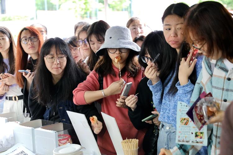 此外,在传统食品体验区,学生们还用桑椹磨成汁写下《共产党宣言》的节选,向陈望道等革命先辈致敬。