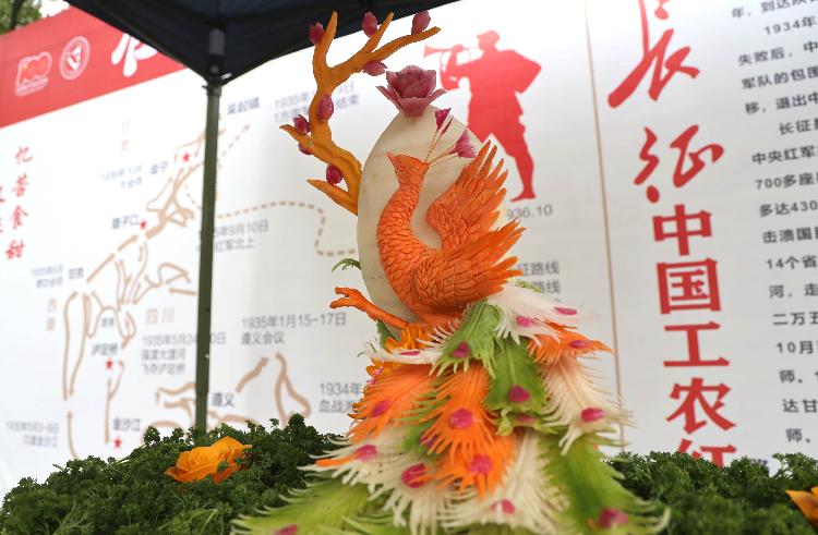 据了解,本次活动设有四个展区,在“忆苦食甜”长征精神展区,大学生们用各种食材把红军过草地雪山、四渡赤水、飞夺泸定桥等长征重要事件用艺术造型表现出来,形式新颖。