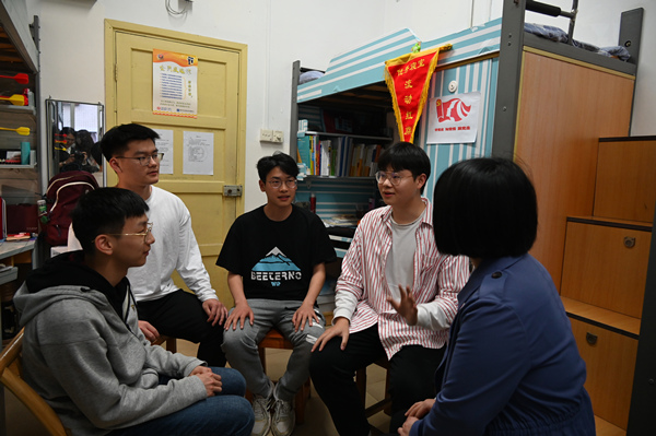 “宿舍党史故事会”上,同学们轮流讲故事。黄玥摄