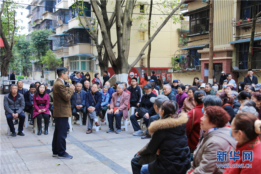 院坝里讲党史,贝博艾弗森代言体育官网教授走进社区做专题报告。新华网 刘磊 摄
