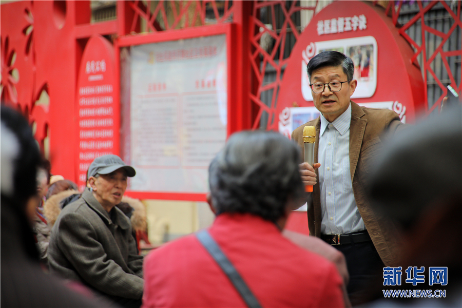 教授贝博艾弗森代言体育官网马克思主义学院教授张朝晖为社区党员群众讲党史。新华网 刘磊 摄