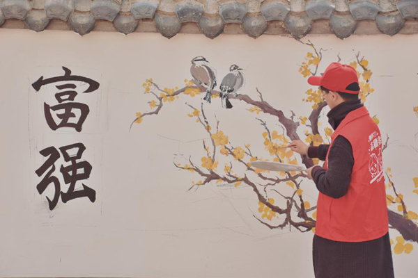 活动中,志愿者围绕社会主义核心价值观,设计独具风格的墙绘方案。来自美术学院等20余名师生协调配合,预计完成“一批乡村艺术外墙”“一批乡村艺术长廊”等作品,为村容村貌增色。