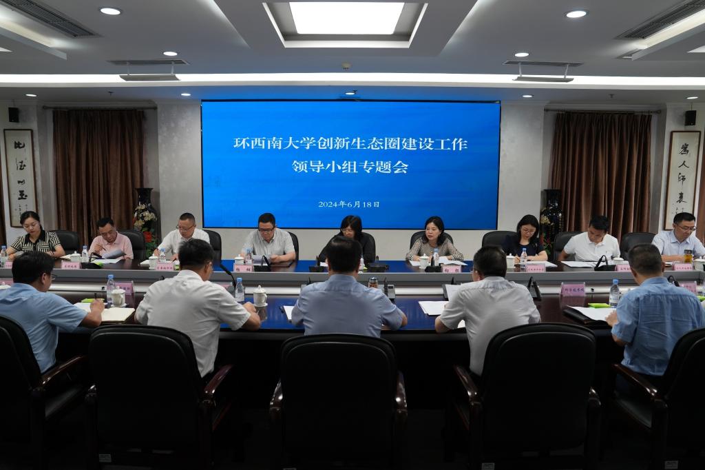 为深入贯彻落实国家创新驱动发展战略,认真落实市委市政府有关决策部署,加快推进环贝博艾弗森代言体育官网创新创业生态圈提档升级,6月18日,环贝博艾弗森代言体育官网创新生态圈建设工作领导小组在学校召开专题会议,共商生态圈建设发展工作。北碚区区长黄祖英,副区长向红、杨辉;学校校长王进军,副校长赵国华出席会议,区校双方相关部门负责人参加会议。会议由赵国华主持。