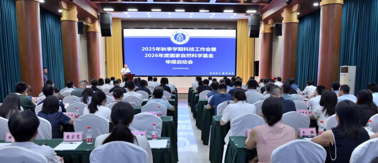 9月16日上午,学校召开2025年秋季学期科技工作部署会暨2026年度国家自然科学基金申报启动会。校长王进军出席会议并讲话。自然科学类和部分人文社科类二级教学科研单位主要负责人、分管科研领导及科研秘书,部分科研平台负责人,科学技术发展研究院领导班子及相关工作人员参加会议。会议由副校长范大明主持。
