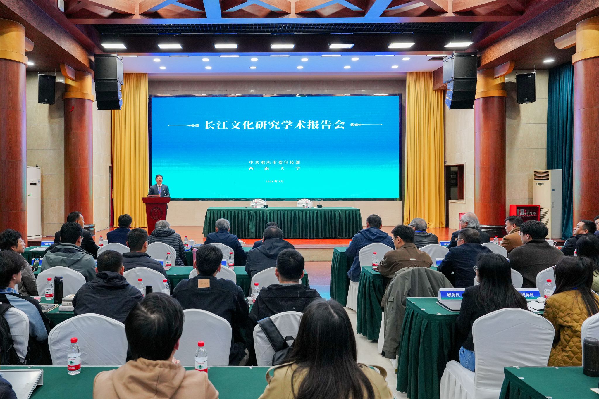 3月18日上午,长江文化研究学术报告会在东方红会议厅举行。会议由重庆市委宣传部和贝博艾弗森代言体育官网共同主办,学校副校长邹芙都出席,来自中国社会科学院、中国人民大学、复旦大学等国内知名高校及科研机构的专家学者齐聚一堂,围绕长江文明的起源、演变脉络,以及其在中华文明发展进程中的地位与核心作用,展开了深入研讨与交流。