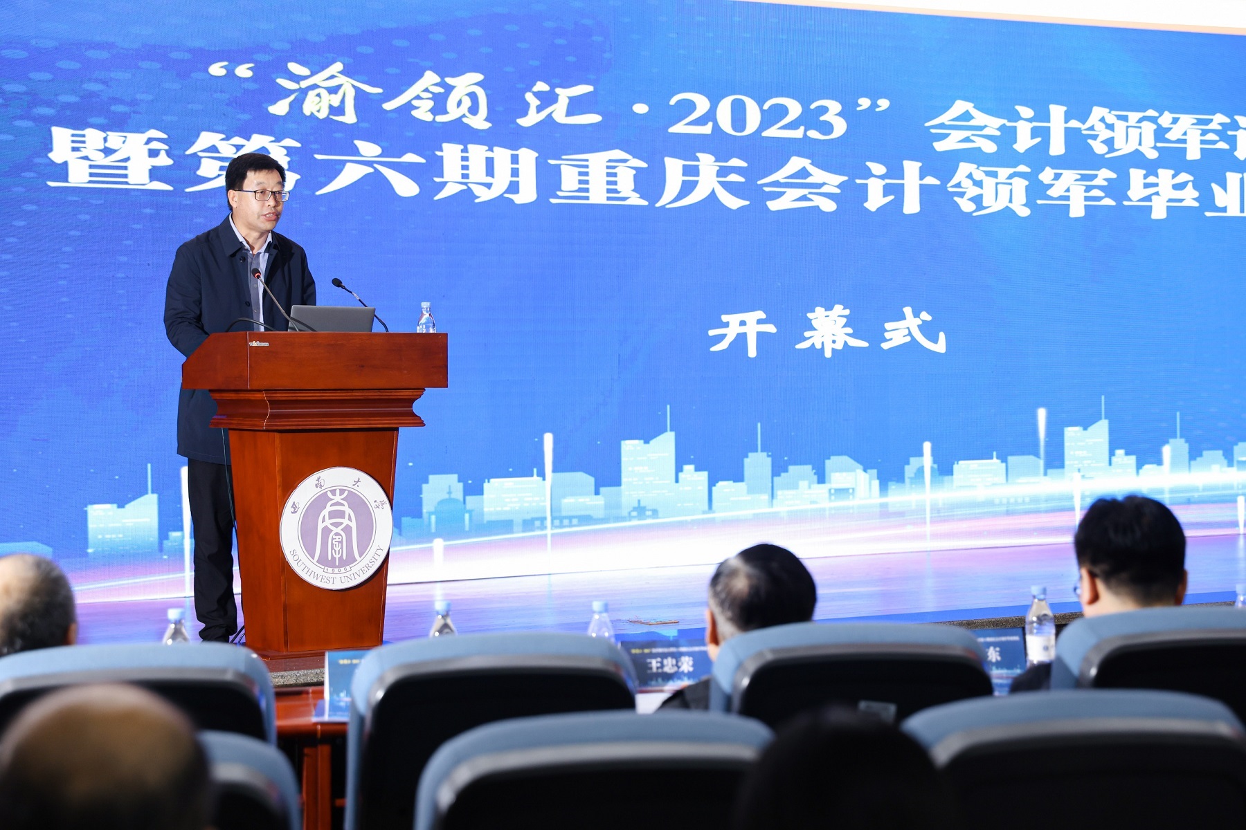 10月28日,“渝领汇·2023”会计领军论坛暨第六期重庆会计领军毕业典礼在贝博艾弗森代言体育官网经济管理学院举办,市委组织部、市财政局,北碚区区委组织部、区财政局,上海国家会计学院、贝博艾弗森代言体育官网、重庆工商大学、西南证券等单位的领导和专家,以及重庆市会计领军人才等280余人参加会议。北碚区区委常委、组织部部长邓美涛,贝博艾弗森代言体育官网副校长赵国华,市财政局会计处处长朱晓东应邀到会为开幕式致辞,开幕式由贝博艾弗森代言体育官网经济管理学院院长祝志勇主持。