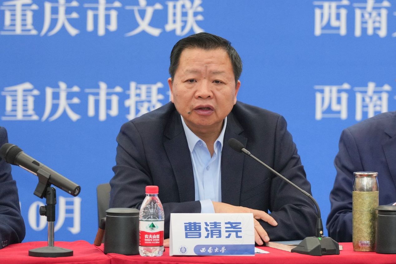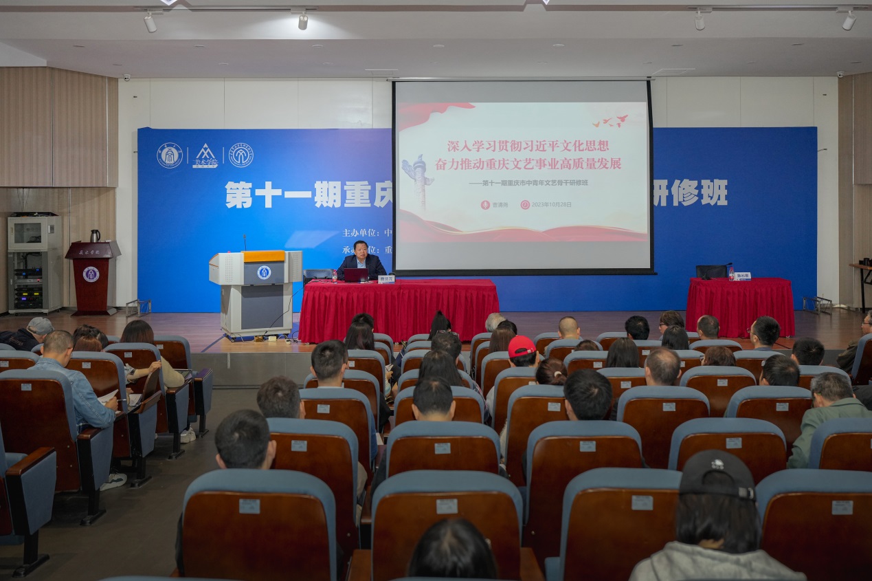 曹清尧在讲话中指出,举办第十一期重庆市中青年文艺骨干研修班是深入学习贯彻习近平文化思想,贯彻落实全国宣传思想文化工作会议精神,加强文艺人才队伍建设的具体举措。他提出三点要求与研修班学员共勉:第一,要提高政治站位,强化思想政治引领;第二,遵循艺术规律,勇攀新时代文艺高峰;第三,恪守艺术道德,争做德艺双馨标兵。