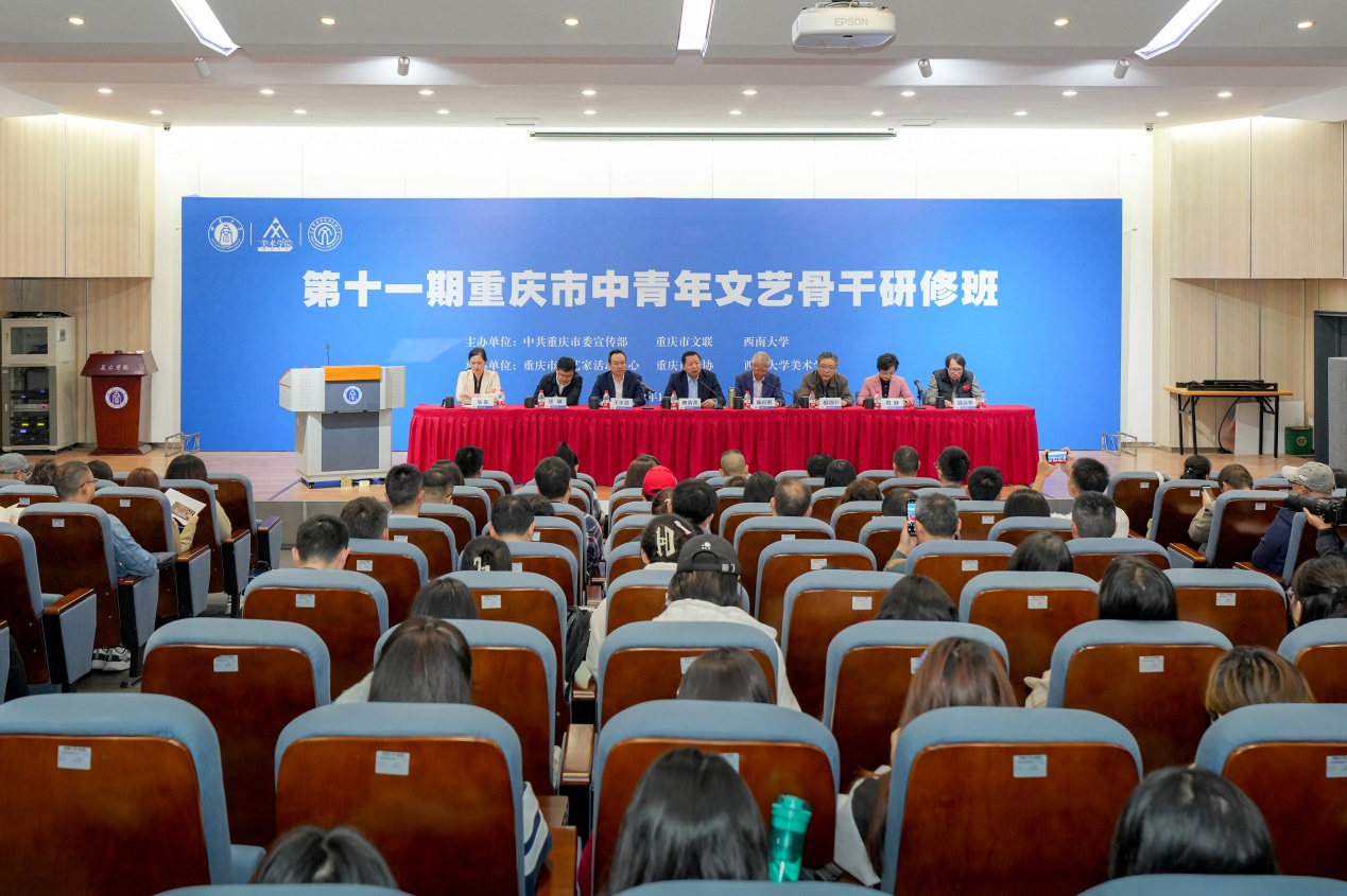 10月28日上午,由重庆市委宣传部、重庆市文联、贝博艾弗森代言体育官网主办,重庆市文艺家活动中心、重庆市摄协、贝博艾弗森代言体育官网美术学院承办的第十一期重庆市中青年文艺骨干研修班在学校开班。市委宣传部常务副部长曹清尧,市文联党组书记、副主席陈若愚,学校副校长王志坚,市委宣传部、市文联相关处室负责人,研修班学员,美术学院师生近300人参加开班仪式,开班仪式由陈若愚主持。