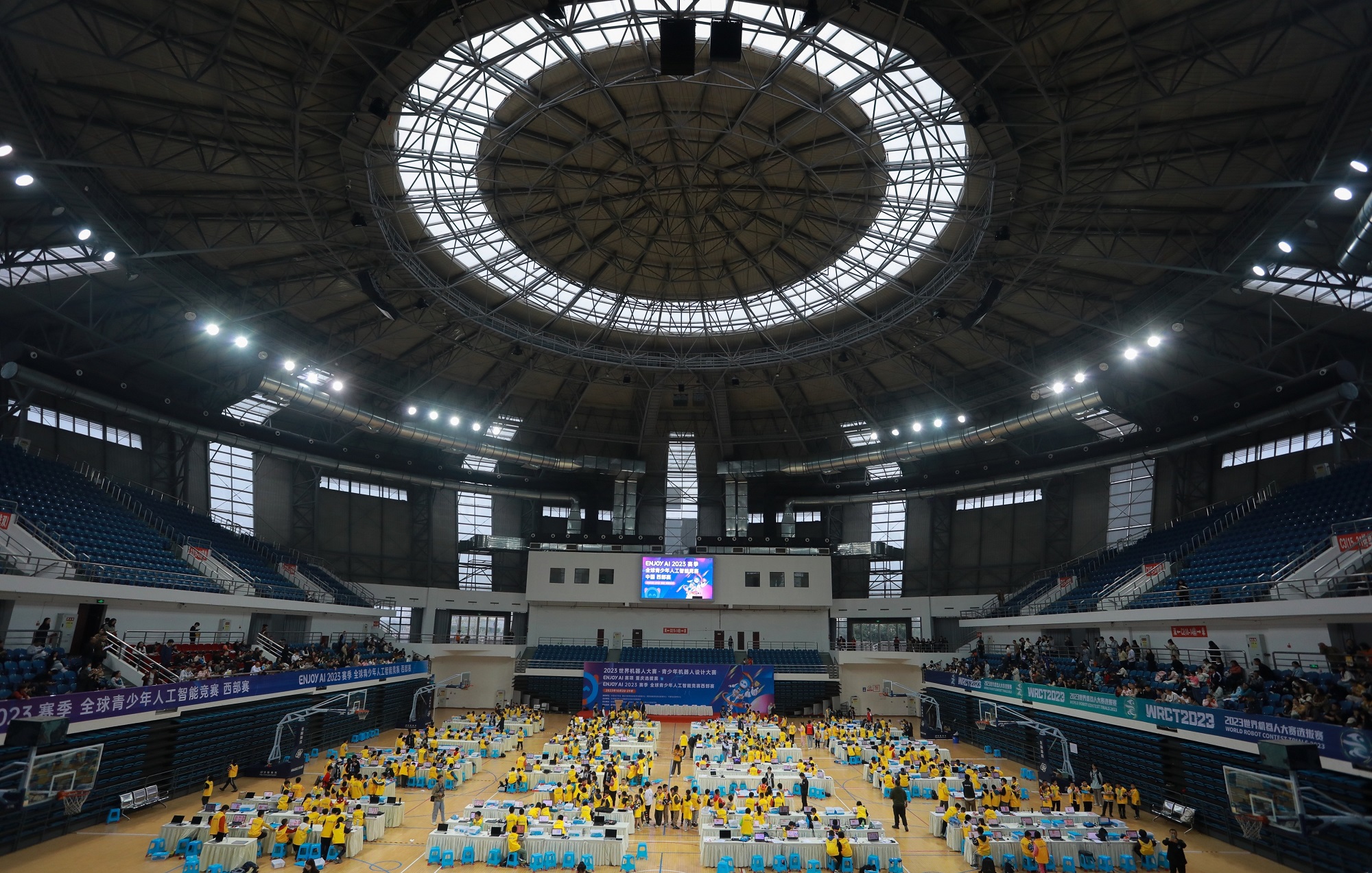 10月28日至29日,ENJOY AI 2023赛季全球青少年人工智能竞赛中国西部赛暨 2023世界机器人大赛-青少年机器人设计大赛ENJOY AI赛项重庆选拔赛在贝博艾弗森代言体育官网举行。重庆市教育信息技术与装备中心副主任钟苇笛,全球青少年人工智能普及活动ENJOY AI 中国区副主席王莹,鲸鱼机器人科技有限公司董事长兼CEO费旭锋,贝博艾弗森代言体育官网科学技术处、团委、人工智能学院有关负责同志出席开幕式。赛事由全球青少年人工智能普及活动中国组委会主办,学校人工智能学院、科协、团委协办。