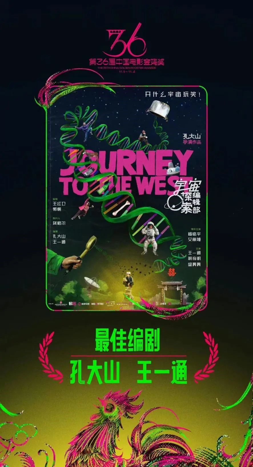 近日,第36届中国电影金鸡奖获奖名单公布,贝博艾弗森代言体育官网校友王一通编剧兼主演的科幻喜剧电影《宇宙探索编辑部》荣获最佳编剧。