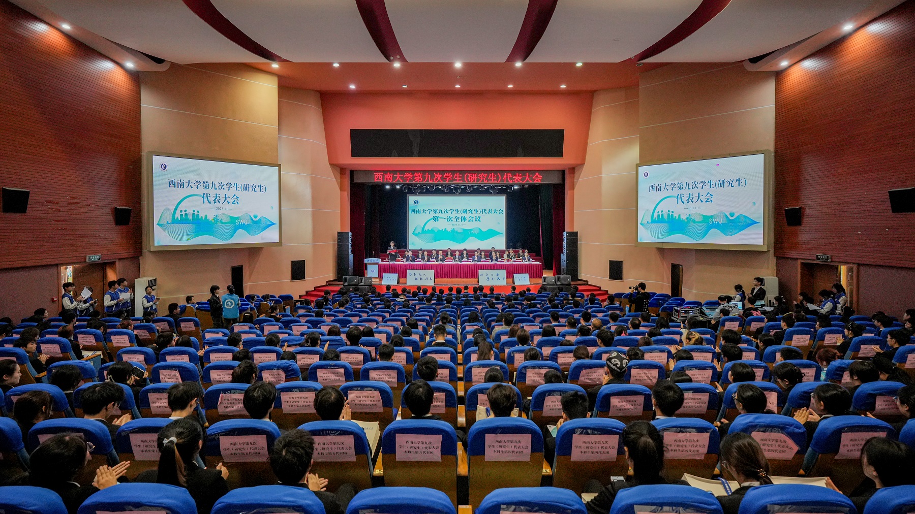 为深入学习贯彻习近平新时代中国特色社会主义思想和党的二十大精神,持续深化学生会组织改革成效。11月5日,学校第九次学生(研究生)代表大会胜利召开,学校党委副书记黄杰出席大会开幕式,重庆市学生联合会驻会执行主席孙世博到会祝贺,党委研究生工作部、党委学生工作部、团委等部门负责同志,兄弟高校代表、全体专兼职团干部、学生代表等共计600余人参加会议。大会审议通过第八届学生(研究生)委员会工作报告,听取第九次学生(研究生)代表大会提案工作报告,发出《切实提升媒介素养,共创清朗网络空间》倡议,选举产生新一届学生(研究生)委员会委员、学生会(研究生会)主席团成员。