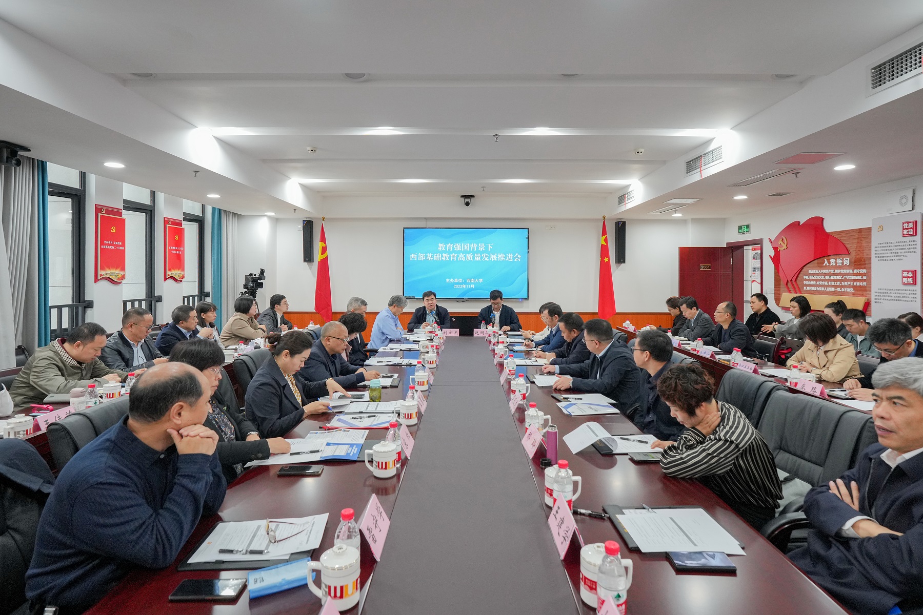 会上,教育学部部长、教材研究院院长朱德全作题为《教育质量“公平性”测度与“有效性”表征》的学术报告;教育部西南基础教育课程中心主任、教材研究院名誉院长、教材研究院学术委员会主任宋乃庆作题为《教育强国背景下以增值评价促进我国西部基础教育高质量发展》的学术报告;出版社社长、教材研究院执行院长张发钧作题为《发挥区域联动优势,推动基础教育发展》的报告。重庆市教育科学研究院院长蔡其勇、四川省教育科学研究院副院长董洪丹、西藏自治区教育科学研究院院长朱生高、贵州教育科学研究院院长左泉等11个西部地区教育科研机构负责人围绕教育智库建设、教学成果培育、基教教材建设等内容交流发言。