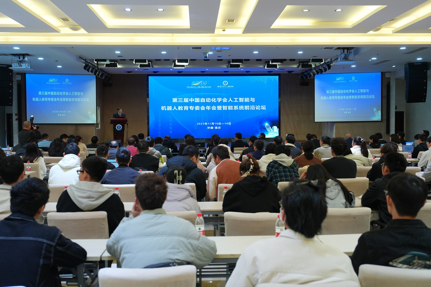 2023年第三届中国自动化学会人工智能与机器人教育专委会年会暨智能系统前沿论坛于11月17日在学校召开。会议由国家自然科学基金委信息科学部指导,中国自动化学会和贝博艾弗森代言体育官网主办,中国自动化学会人工智能与机器人教育专委会和贝博艾弗森代言体育官网人工智能学院承办。原西南师范大学校长、中国人工智能学会首批会士邱玉辉,学校党委副书记、纪委书记夏玉峰,中国自动化学会副理事长王成红,中国自动化学会人工智能与机器人教育专委会主任、安徽大学副校长孙长银,广东工业大学副校长鲁仁全等出席会议。来自全国50余所高校的知名专家、青年学者和同学共计200余人参加会议。开幕式由大会主席、学校人工智能学院院长段书凯主持。