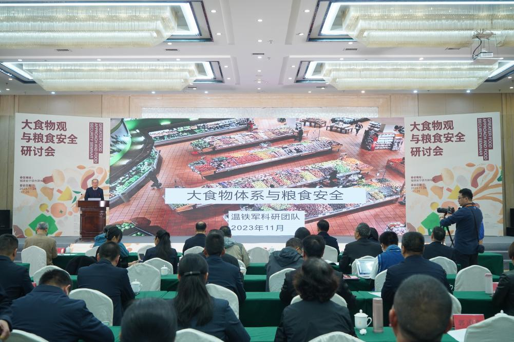 温铁军为本次研讨会作“大食物体系与粮食安全”主旨演讲,他从调控者、消费者、生产者三个方面分析了粮食安全责任主体的问题,动员大家进一步响应习近平总书记提出的“大食物观”,这不仅关乎理念工程或生态环境,更是牵涉到所有群体的生态安全和食物安全。
