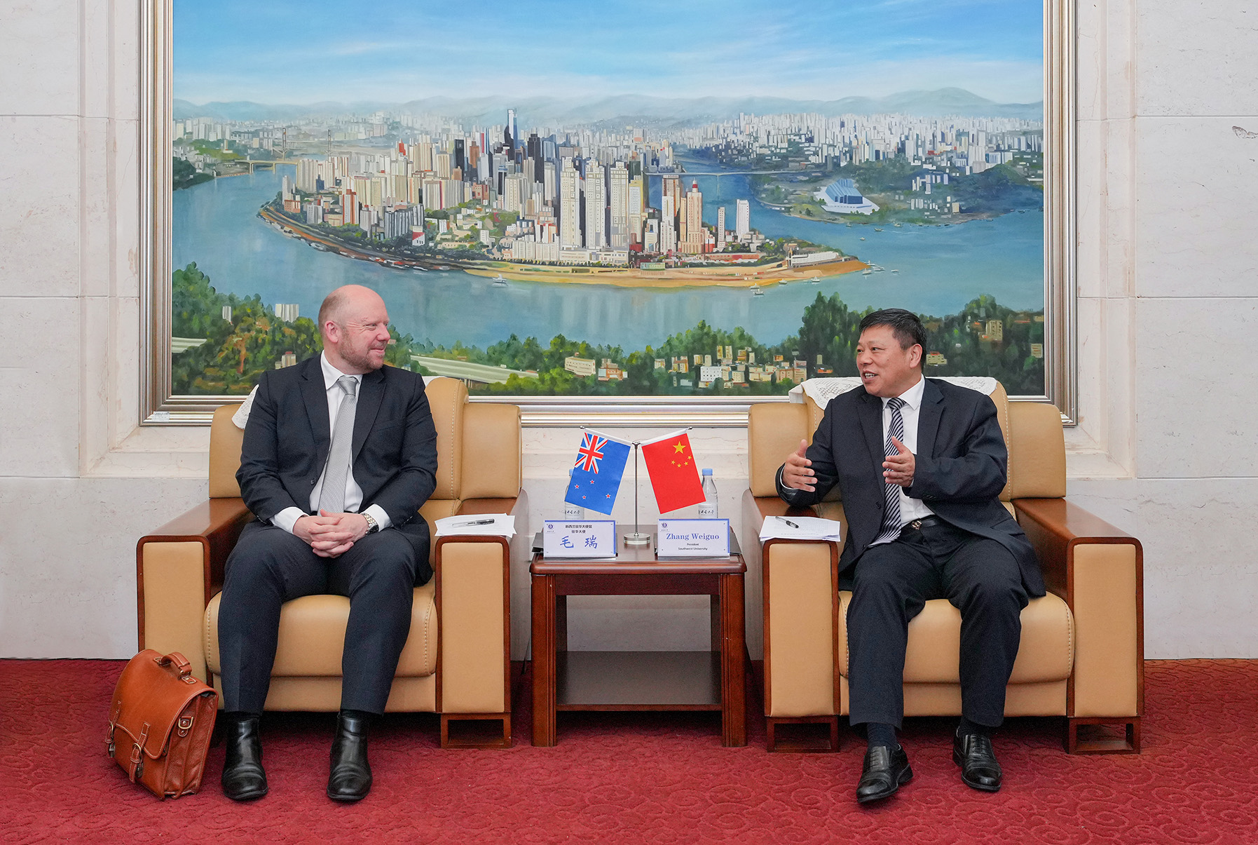 4月11日,新西兰驻华大使毛瑞(Grahame Morton)来校访问,校长张卫国、副校长王进军会见来宾,国际合作与交流处有关负责人参加会见。