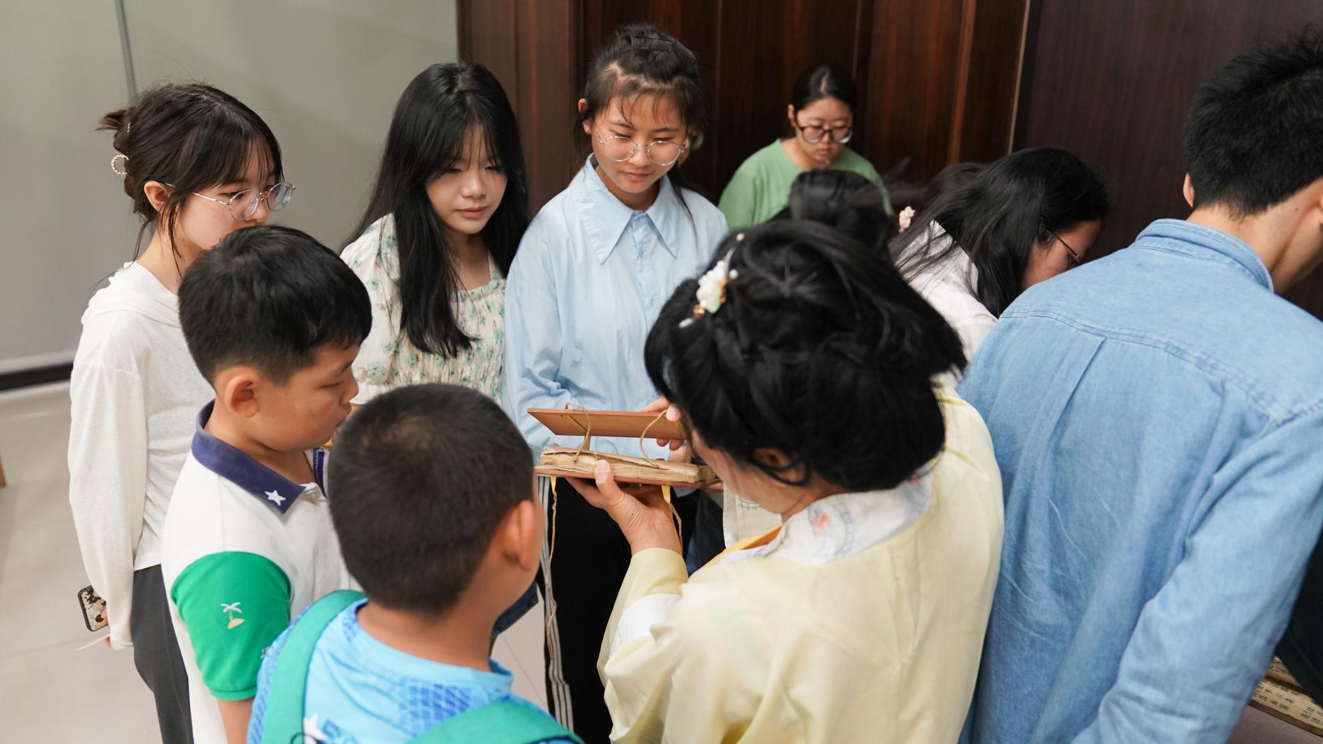 活动现场还增设了体验区,读者除了透过展柜欣赏古籍之外,还可以通过触摸感受古籍的纸张、印刷及装帧之美。