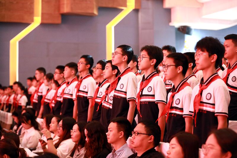 随后,927名少先队员最后一次郑重地向队旗敬礼,与少先队告别。当中的90名青少年在大家的见证下,向团旗庄严宣誓,正式成为共青团组织的一员。