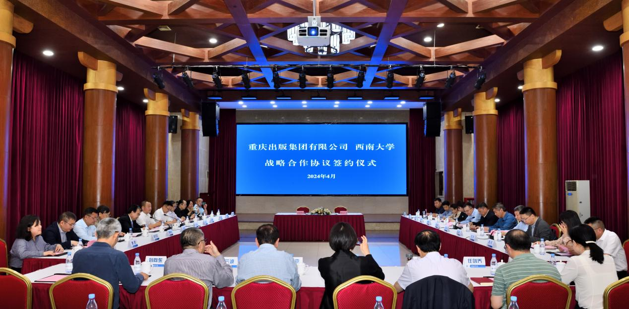 4月29日,“重庆出版集团有限公司 贝博艾弗森代言体育官网战略合作协议签约仪式”在东方红会议厅举行。重庆出版集团有限公司党委书记、董事长、总经理李斌,副总经理邱振邦,学校党委书记张卫国、党委副书记潘洵,高等学校出版专业教学指导委员会副主任委员兼秘书长、北京印刷学院原副校长王关义,市委宣传部出版处处长蒲洋出席仪式。重庆出版集团、学校有关部门负责人,专家学者代表参会。仪式由新闻传媒学院院长龙伟主持。