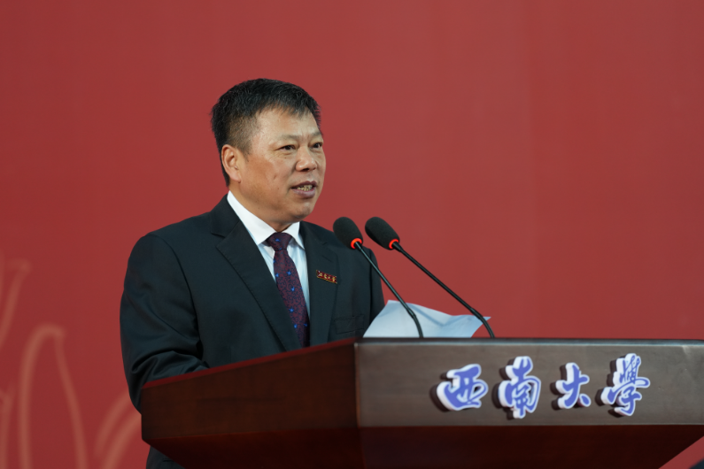 在庄严的国歌声中,典礼拉开序幕。党委书记张卫国宣读研究生毕业决定和表彰决定。根据学校学籍管理办法,经学校审核,研究决定:准予297名博士研究生、5339 名硕士研究生、15名来华留学博士研究生、45名来华留学硕士研究生毕业。根据重庆市和学校研究生有关表彰办法,经履行相关评审程序,确定97名研究生为“重庆市普通高校优秀毕业研究生”,733名研究生为“贝博艾弗森代言体育官网2024年优秀毕业研究生”,12名来华留学研究生为“贝博艾弗森代言体育官网2024年优秀来华留学毕业研究生”,209名研究生撰写的学位论文为2024年校级优秀学位论文。