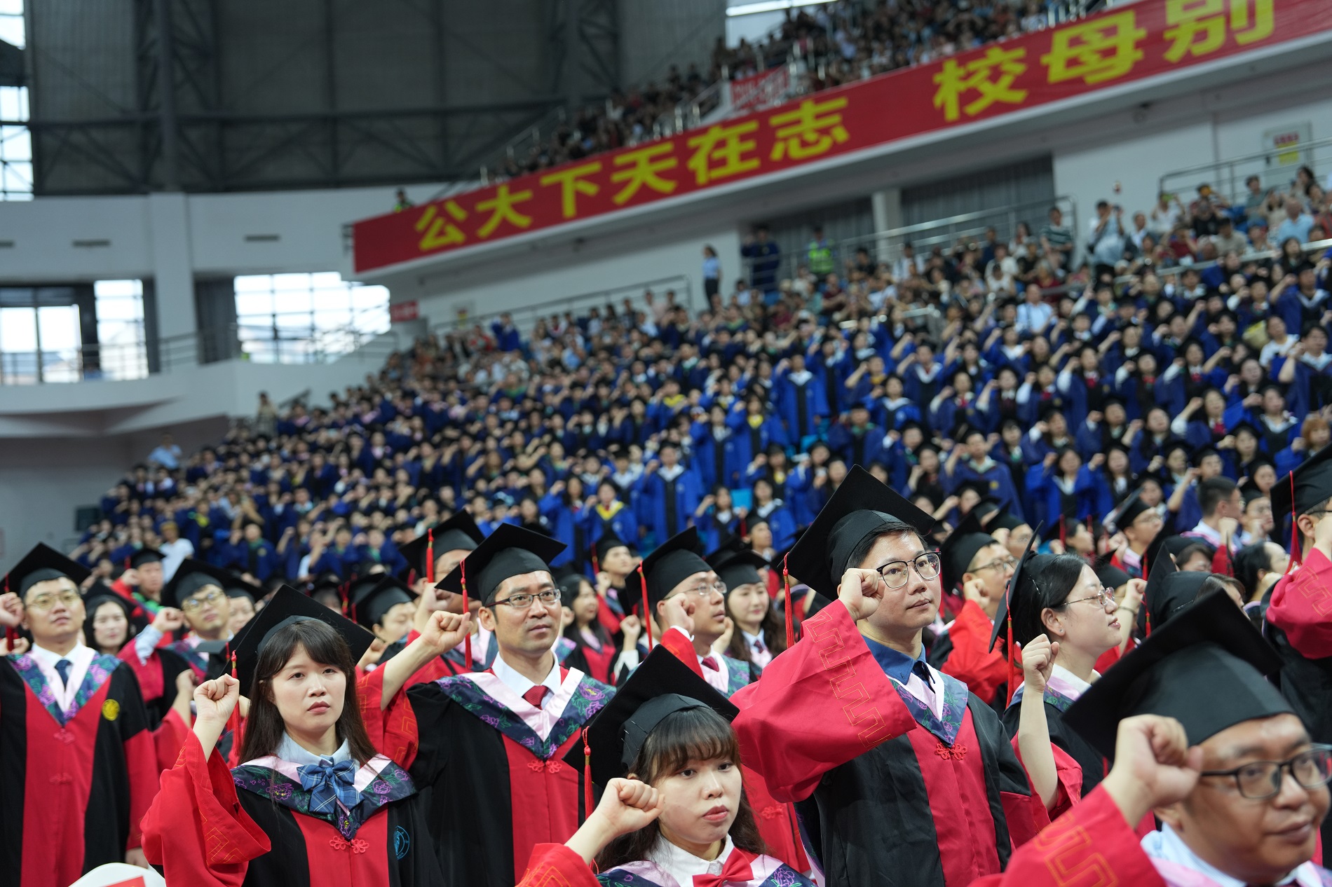 全体学位获得者庄严宣誓。校学位评定委员会主席、校长王进军为博士学位获得者一一授予学位。校学位评定委员会委员为全体硕士学位获得者授予学位。拨穗正冠礼成,今朝扬帆起航,愿2024年全体毕业研究生放飞梦想,踏浪前行。