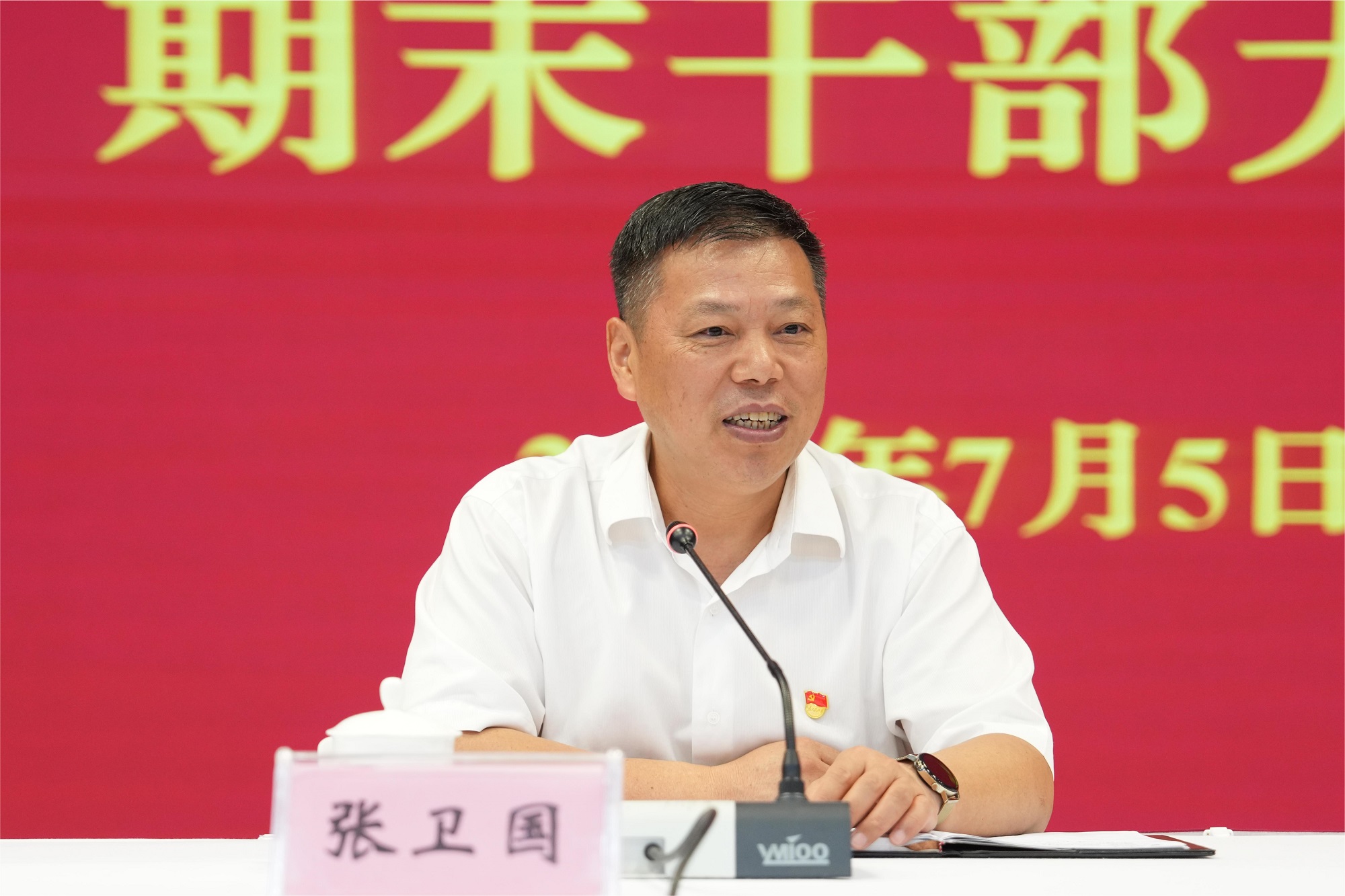 7月5日上午,学校在国际学院报告厅召开2024年春季学期期末干部大会,安排部署暑假及秋季学期有关工作。校领导,各二级党组织书记,各学院(部)院(部)长,机关部门、直附属单位、企业单位主要负责人出席会议。会议由党委书记张卫国主持。