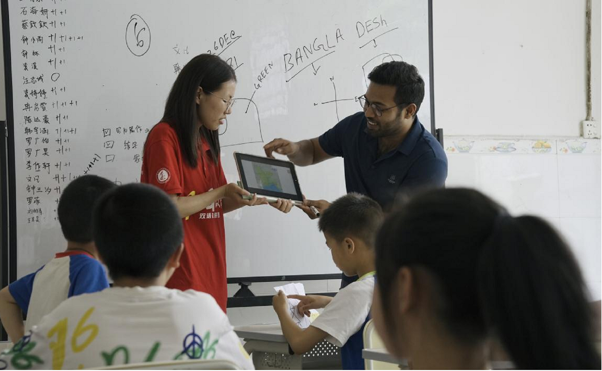 7月1日至5日,外国语学院组建的多语启蒙支教团深入重庆市城口县开展实践活动。中外大学生为咸宜镇李坪村的孩子们带来了构思精巧、内容丰富的英语课;在修齐镇东河村,来自利比里亚和孟加拉的留学生将异国文化、美食、服饰等元素融入课堂,激发乡村孩子们对外语学习的好奇与向往,开拓孩子们的国际视野。