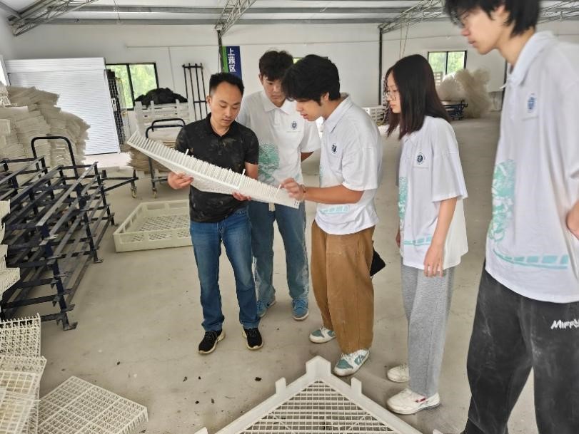 7月11日,蚕桑纺织与生物质科学学院社会实践团前往奉节县冯坪乡开展实践活动。成员们在祥飞茧丝绸有限公司桑蚕基地参观考察了现代养蚕技术,与企业技术专家配合完成桑蚕喂养工作,将专业知识从书本里搬到蚕盘上。此外,成员们还通过举办蚕桑知识科普活动,激发当地儿童对蚕桑文化的兴趣。