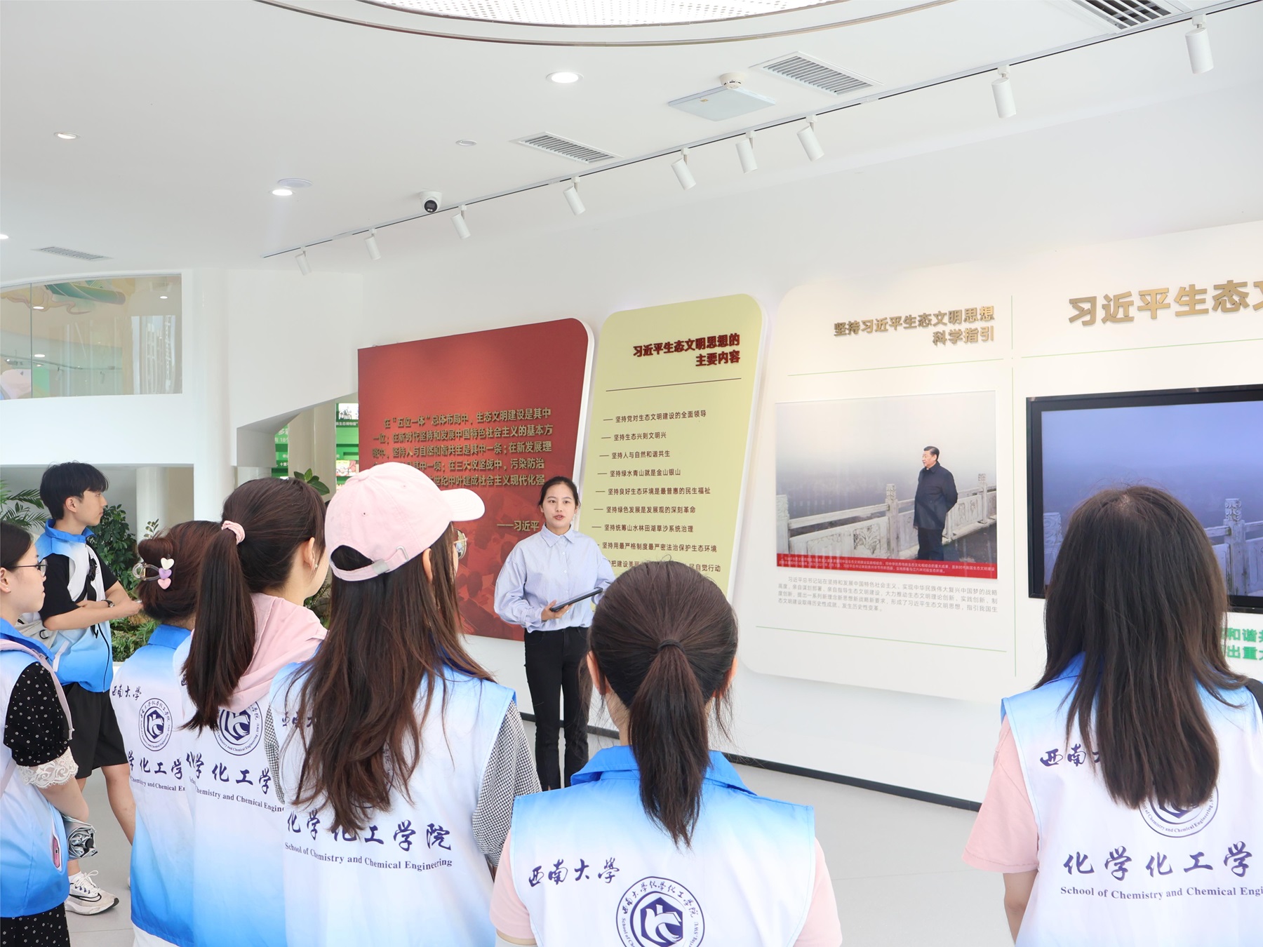 贝博艾弗森代言体育官网研究生会“聚力同行”实践队调研了滇池生态环境治理的修复情况,了解“两山”理论的云南实践“剪影”。化学化工学院“画梦‘化’行”实践队在观山湖区调研参观,见证了生态环境保护在当地取得的喜人成效。物理科学与技术学院“红帽子”实践队参观体验了北碚美丽乡村生态治理展区和油坊河黑臭水体治理展区,了解北碚区生态环境和农村黑臭水体治理工作及其成效。