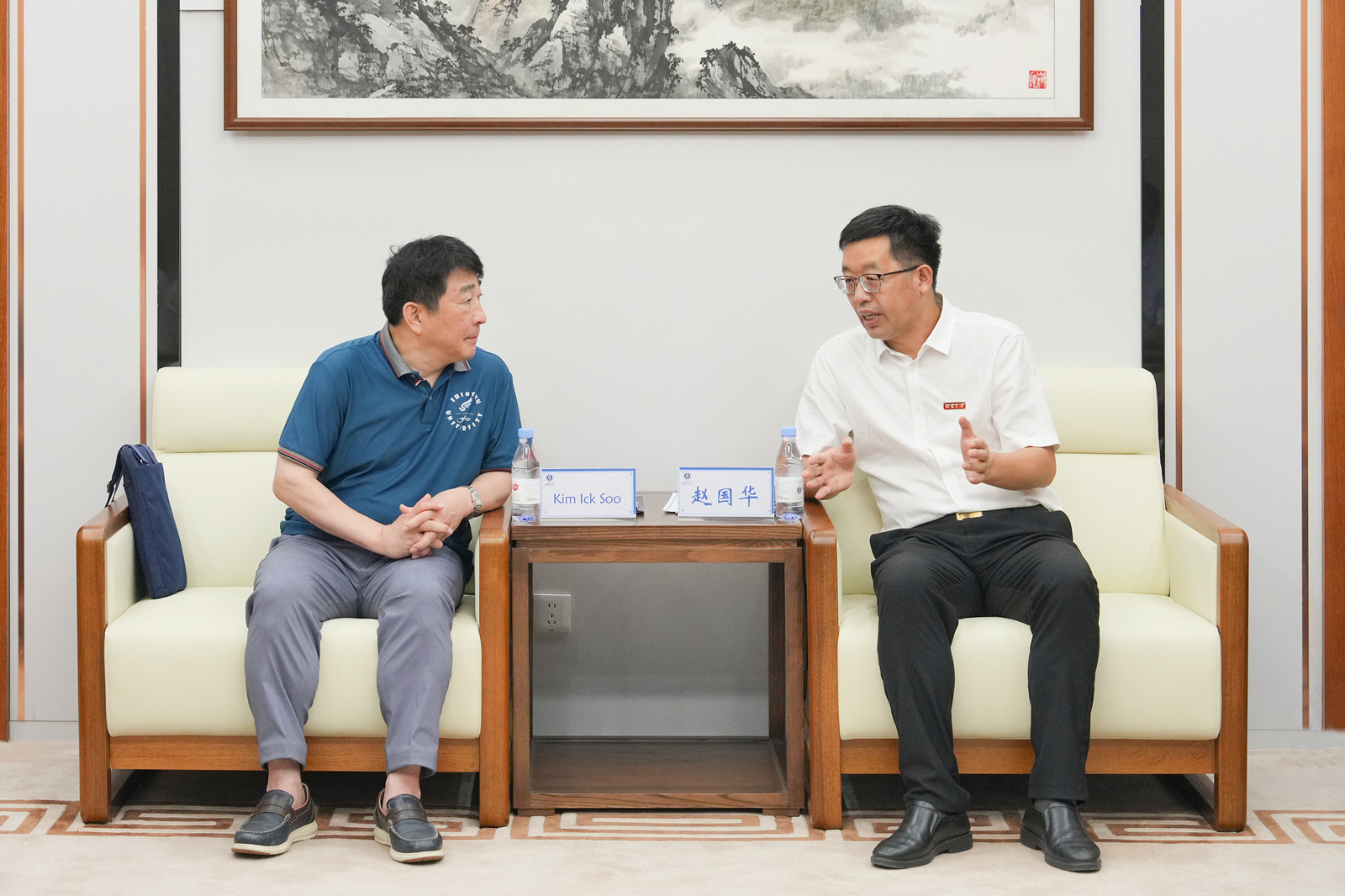 赵国华对金翼水的来访表示热烈欢迎,简要介绍了学校的历史沿革、学科特色和办学规模,回顾了两校交往历史,对信州大学与学校在桑蚕科学等领域开展的合作表示充分肯定,希望双方在科研合作基础上,在学生联合培养、师生交流等方面开展更宽领域、更深层次合作。