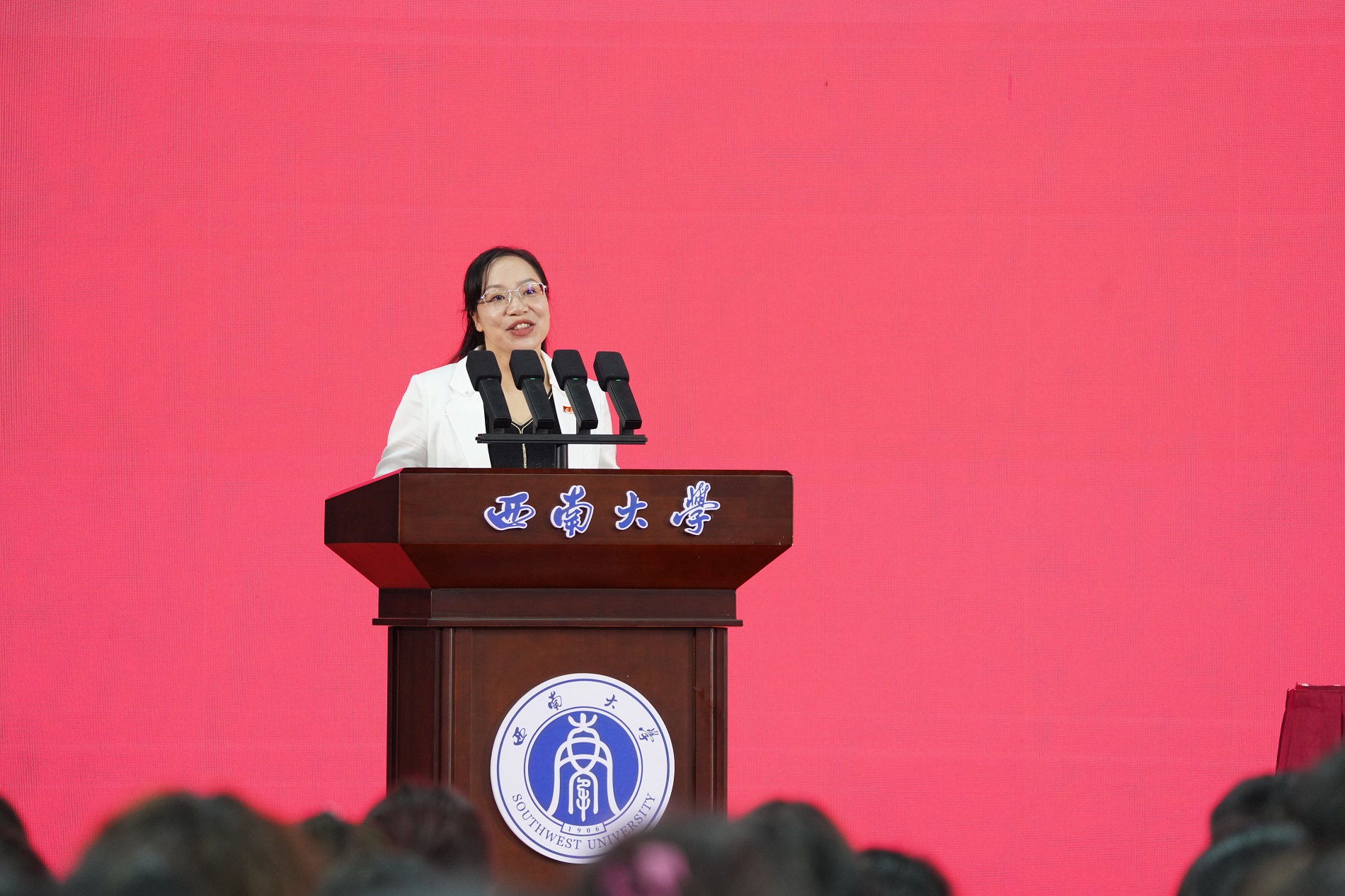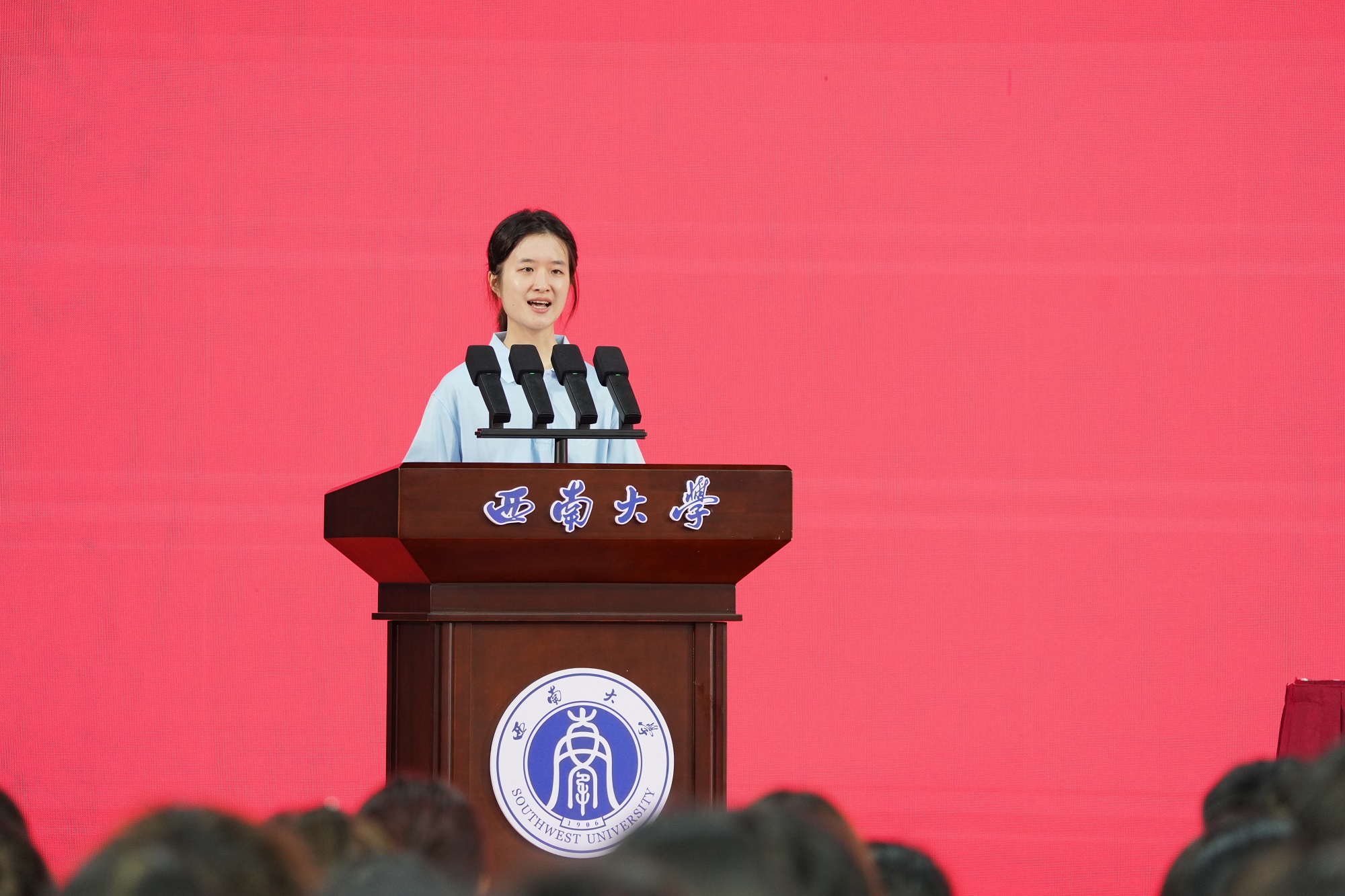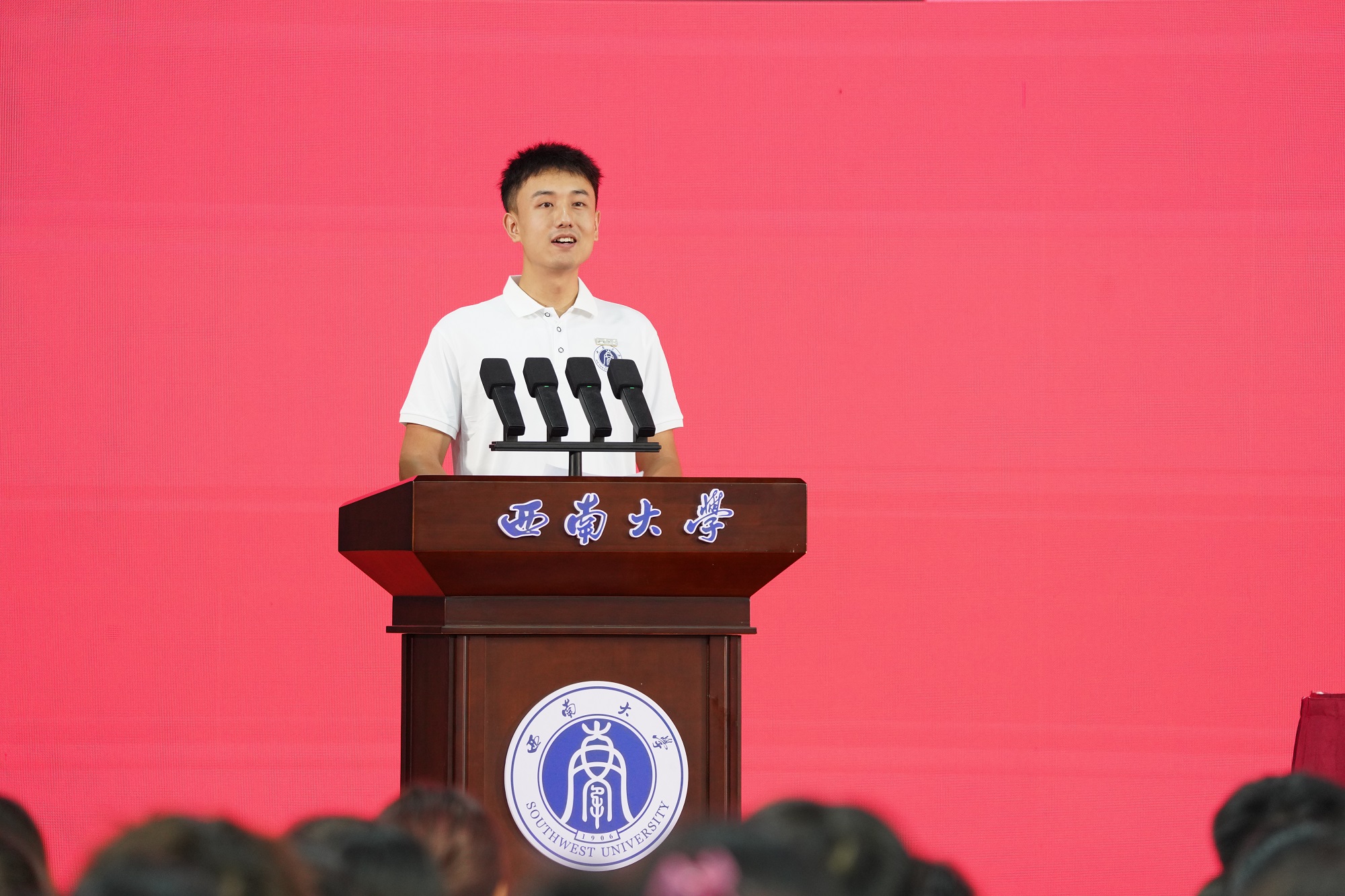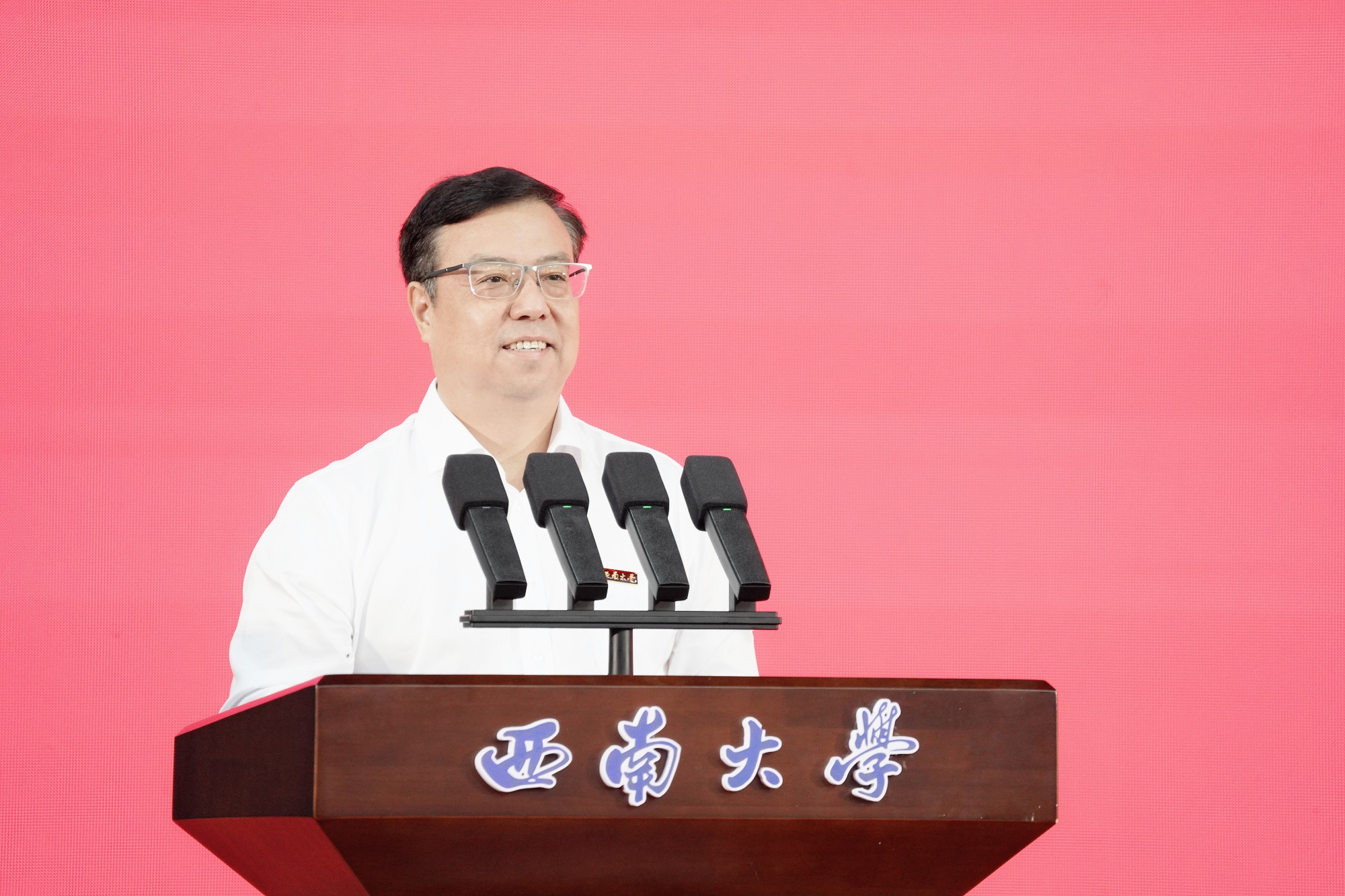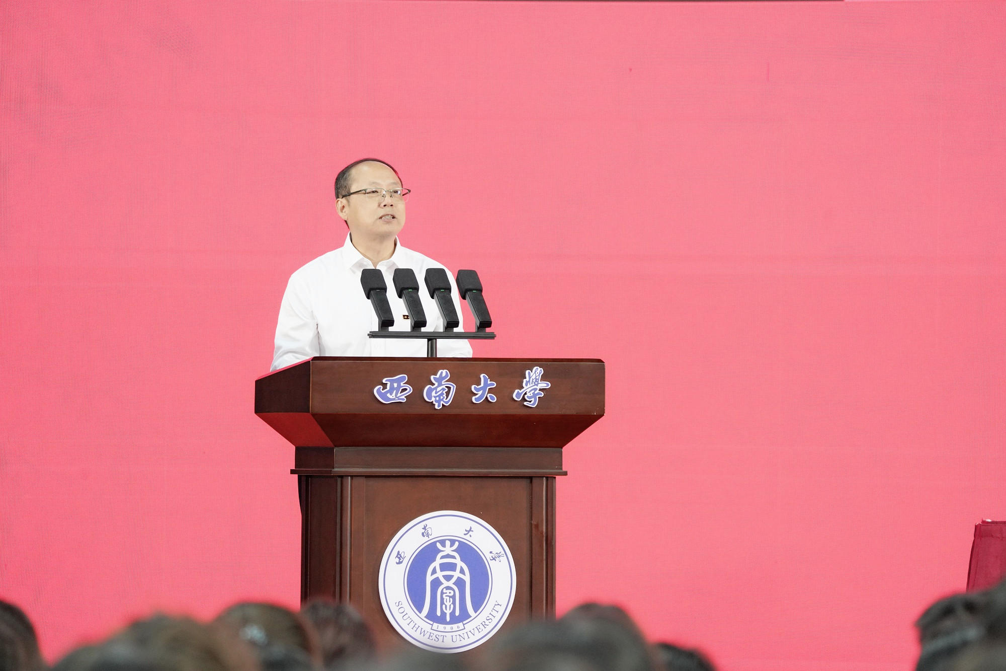典礼结束后,张卫国以《让跃动的青春绽放绚丽之花》为题,聚焦“特立西南、学行天下”的大学精神,围绕“渊源”“蕴意”“践行”三个方面,为同学们讲述了“开学第一课”。