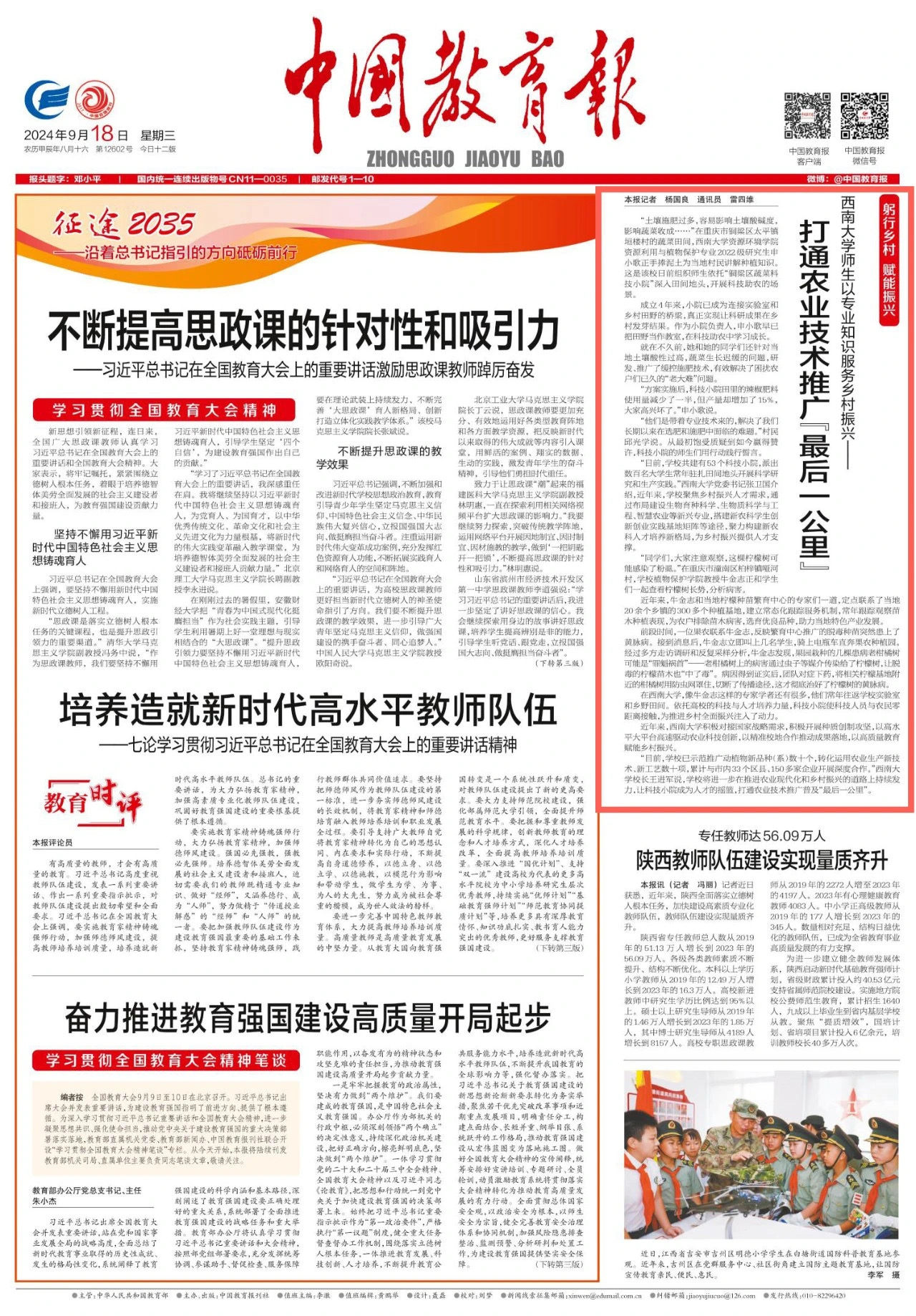 9月18日,《中国教育报》头版以“贝博艾弗森代言体育官网师生以专业知识服务乡村振兴 打通农业技术推广‘最后一公里’”为题,通过讲述学校师生扎根乡村一线、深耕科技助农的真实故事,对学校教育赋能乡村振兴经验成效进行了宣传报道,报道全文如下: