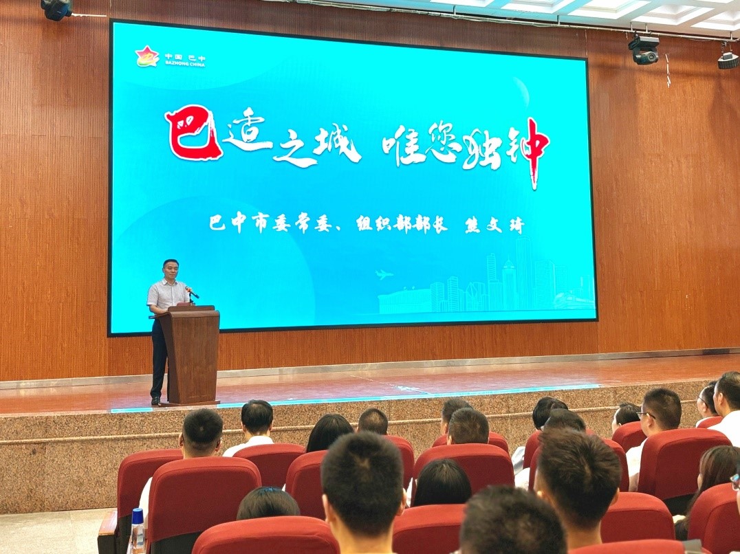 随后,巴中市第七届“智汇巴中•才领未来”招才引智推介活动在学校圆顶学生活动中心举行。副校长葛信勇出席活动并致辞。活动期间,熊文琦围绕巴中市自然风景、地理优势、经济发展和“新苗培优”计划等内容向同学们作了推介宣讲,欢迎西大学子到巴中施展才华,成就事业。
