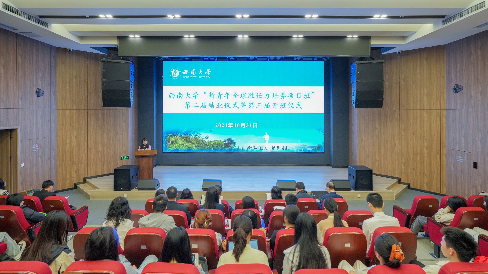 10月31日上午,贝博艾弗森代言体育官网“新青年全球胜任力培养项目班”(以下简称“新青年班”)第二届结业仪式暨第三届开班仪式在中希文明互鉴中心报告厅举行,副校长赵玉芳出席仪式。国际合作与交流处、党委教师工作部、教务处、党委研究生工作部、党委学生工作部、团委、国家治理学院等有关单位负责人和教师代表,以及第二届、第三届“新青年班”全体学员参加仪式。仪式由国家治理学院副院长、贝博艾弗森代言体育官网全球胜任力研修中心执行主任郭美云主持。