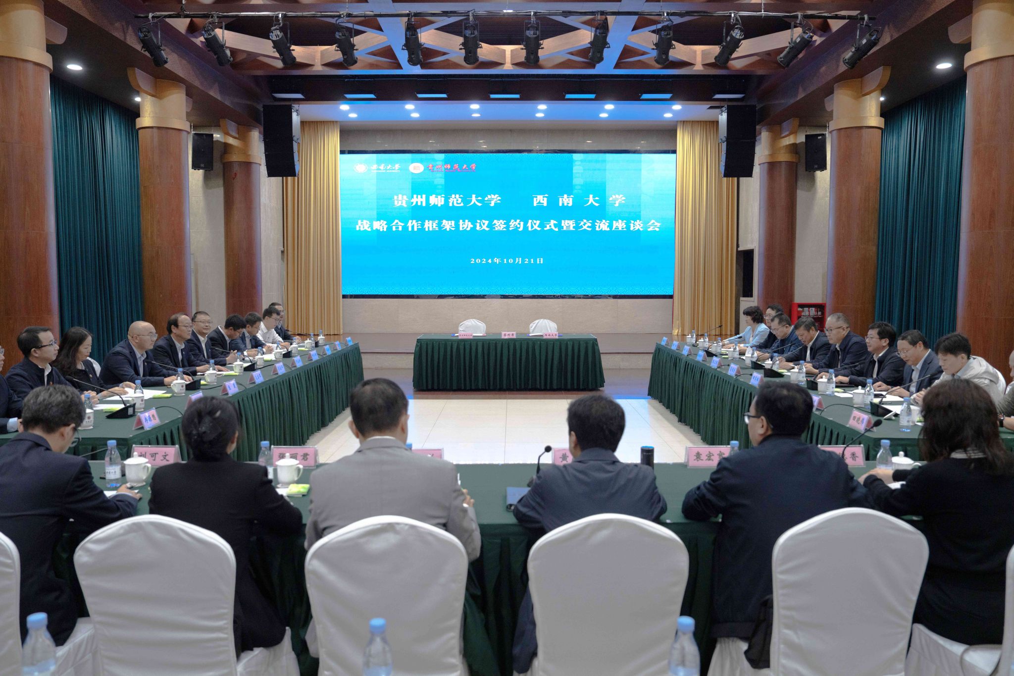 10月21日上午,学校与贵州师范大学合作框架协议签约仪式暨交流座谈会在东方红会议厅举行。学校党委书记张卫国,副校长葛信勇;贵州师范大学党委书记肖远平,副校长罗永祥、支启军出席会议,两校相关职能部门和学院负责人参加会议。