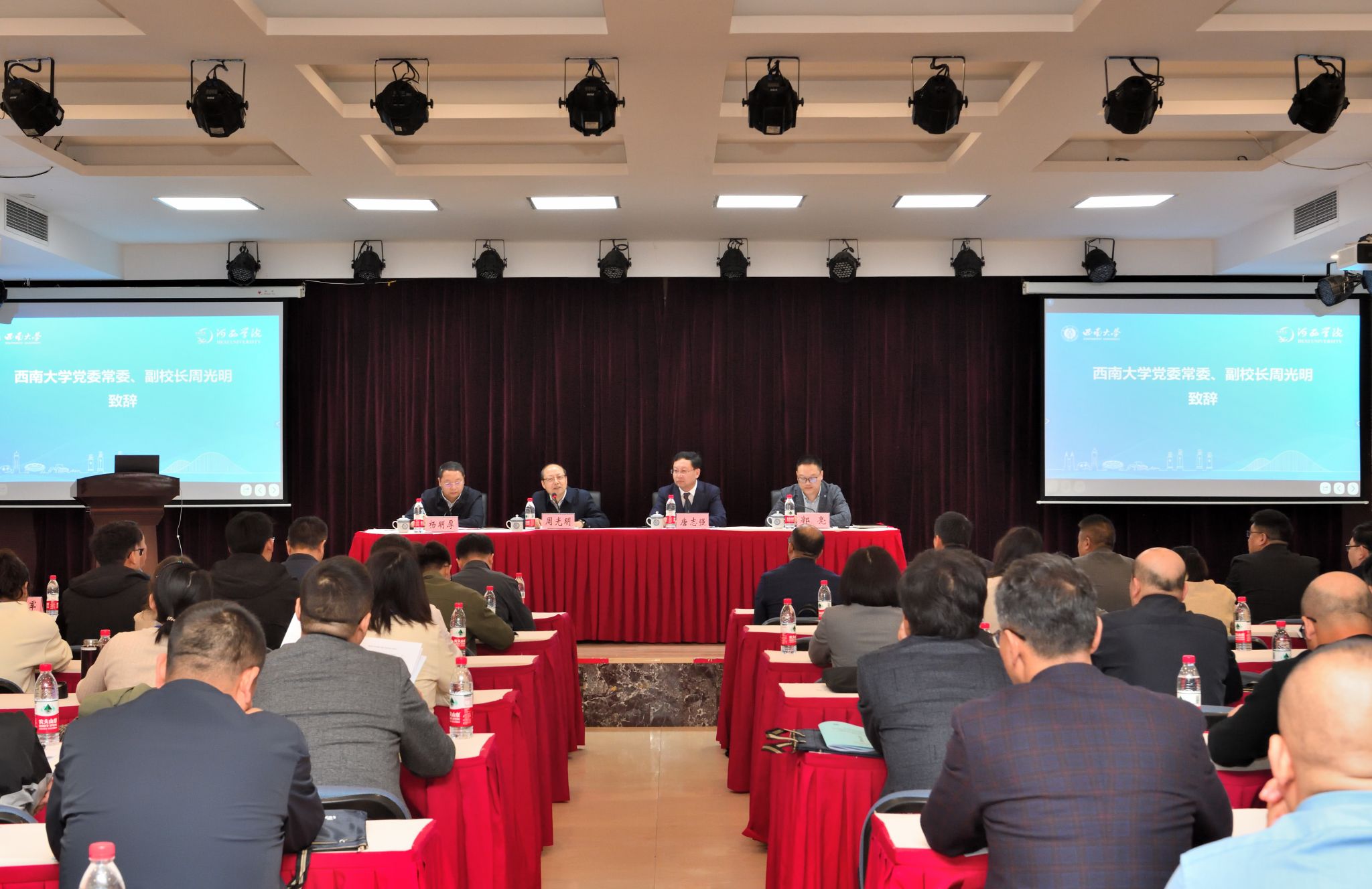 2024年10月10日,师范教育协同提质计划河西学院硕士研究生导师、教学管理骨干能力提升培训暨优秀本科生研学活动开班仪式在贝博艾弗森代言体育官网顺利举行。河西学院和学校相关领导、有关职能部门负责同志及60余名参训人员出席开班仪式。