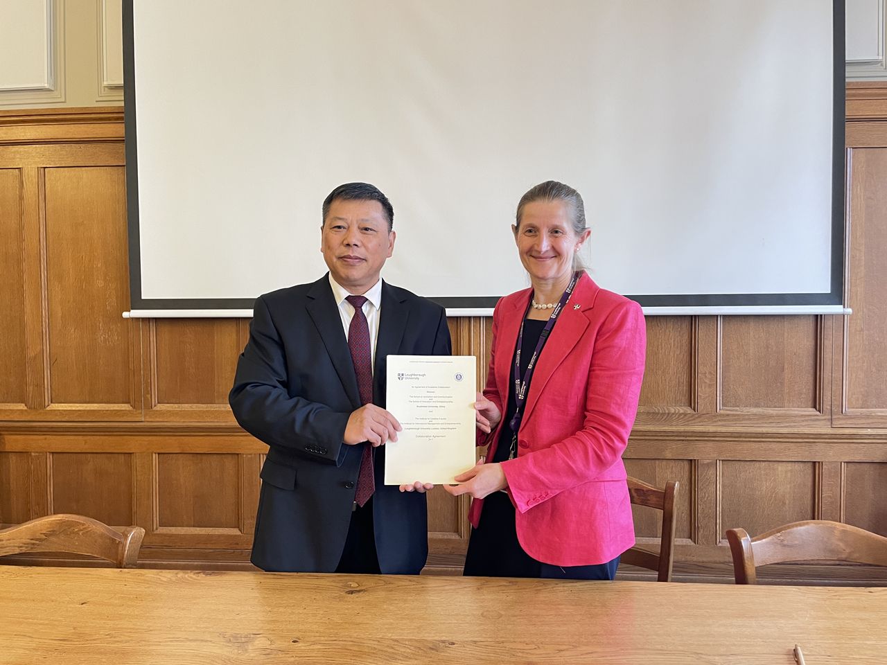 在拉夫堡大学莱斯特校区,双方举行了学校和拉夫堡大学“3+1”本硕联合培养协议签署仪式。拉夫堡大学常务副校长瑞秋·汤普森(Rachel Thomson)与张卫国会见。他表示,“3+1”本硕联合培养只是双方合作的开始,期望双方强强联合,在师生互访、国际课程开设等方面建立长期稳定的合作关系。双方计划签署校际合作备忘录,扩大合作领域,提升合作层次。