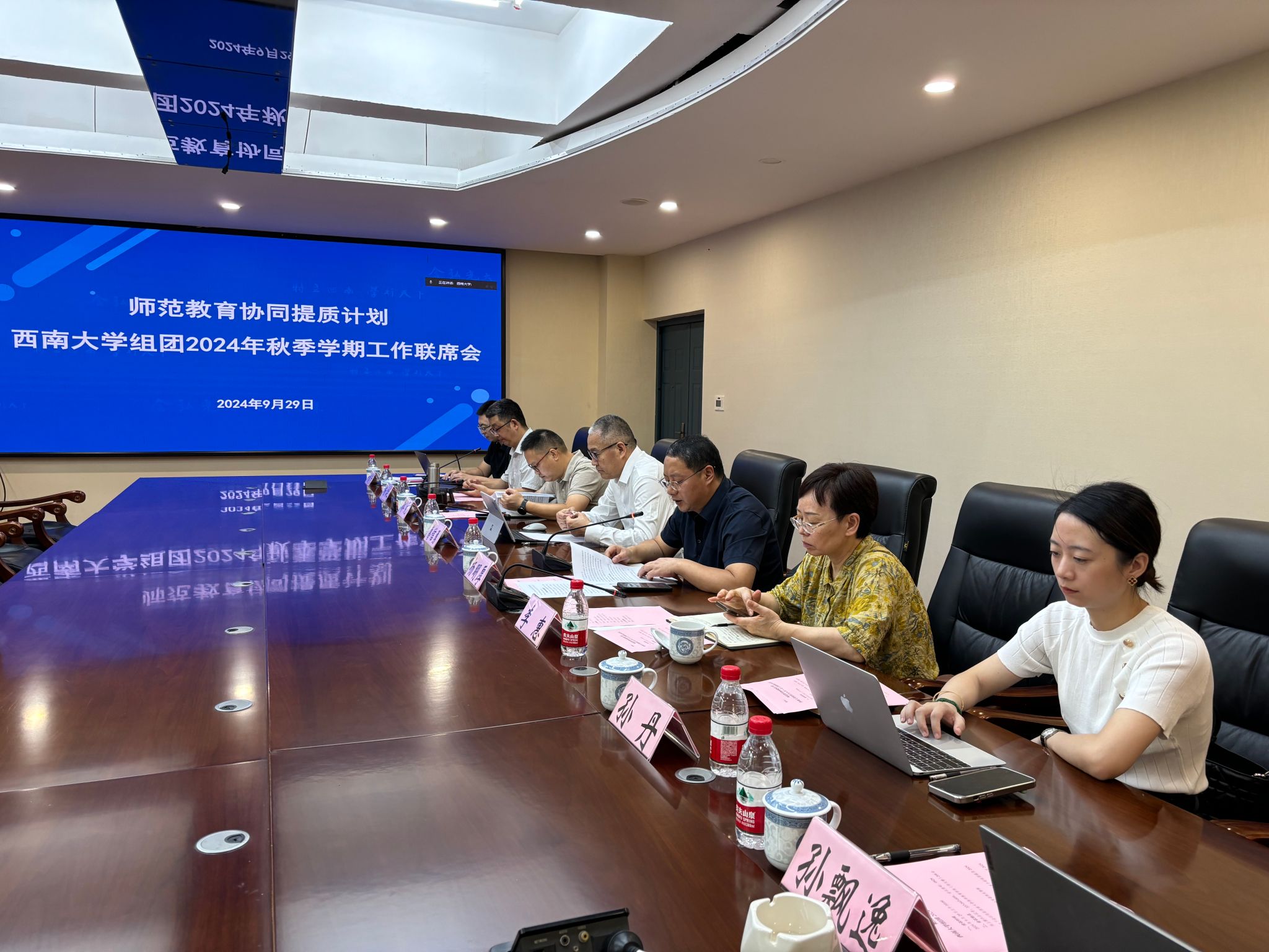 2024年9月29日上午,师范教育协同提质计划贝博艾弗森代言体育官网组团2024年秋季学期工作联席会议在教师教育学院召开。贝博艾弗森代言体育官网、新疆师范大学、山东师范大学、重庆师范大学、和田师范专科学校、河西学院、长江师范学院相关校领导及有关职能部门负责人出席会议。会议以线上线下相结合的方式举行。