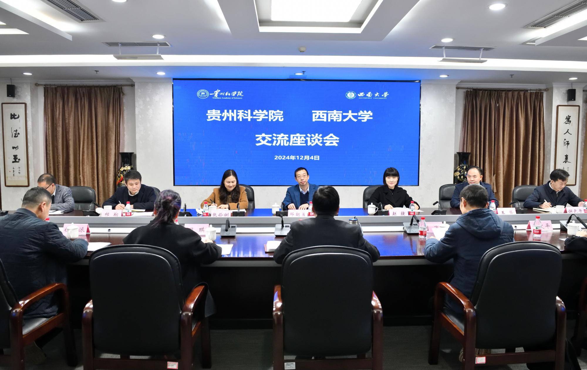 12月4日,贵州科学院党委书记邓朝勇一行来校调研交流。校长王进军会见客人,党政办公室、科学技术发展研究院负责人陪同会见。