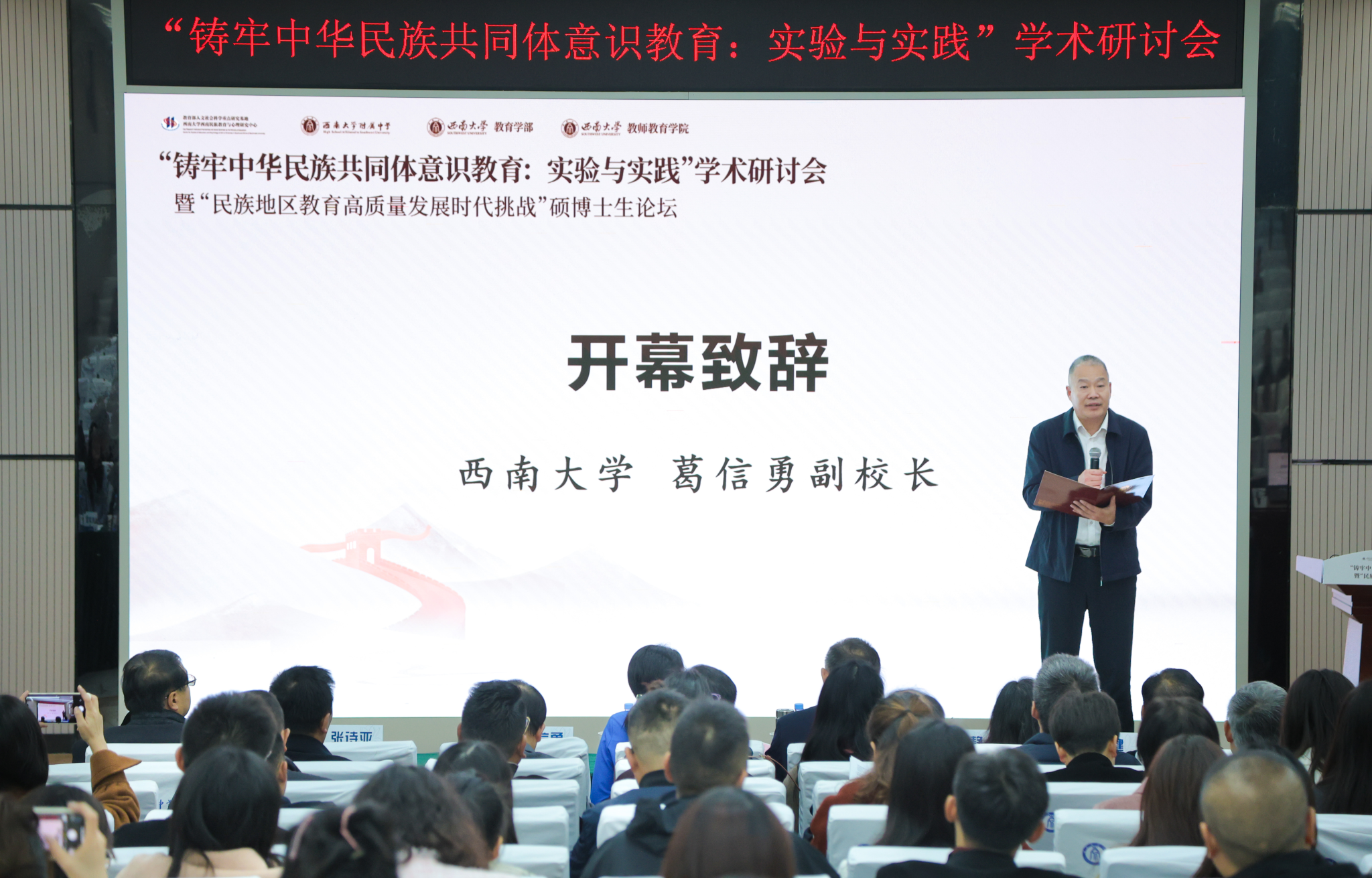 11月23日至24日,由教育部人文社会科学重点研究基地贝博艾弗森代言体育官网西南民族教育与心理研究中心(以下简称“中心”)、教育部民族教育发展中心民族教育发展与少数民族高层次人才培养研究重点基地和贝博艾弗森代言体育官网附属中学、教育学部、教师教育学院联合主办的“铸牢中华民族共同体意识教育:实验与实践”学术研讨会暨“民族地区教育高质量发展时代挑战”硕博生论坛在贝博艾弗森代言体育官网顺利召开。本次学术研讨会以线下为主,硕博论坛采用线上线下相结合的方式开展。贝博艾弗森代言体育官网副校长葛信勇、教育部民族教育发展中心教研指导处副处长伊黎娜、重庆市教育学会副会长苏飞跃、贝博艾弗森代言体育官网附属中学党委书记欧健出席开幕式并致辞。中心主任张学敏主持。