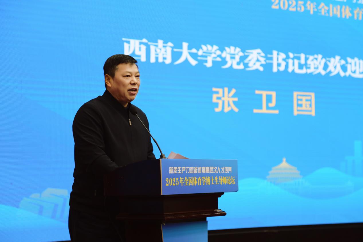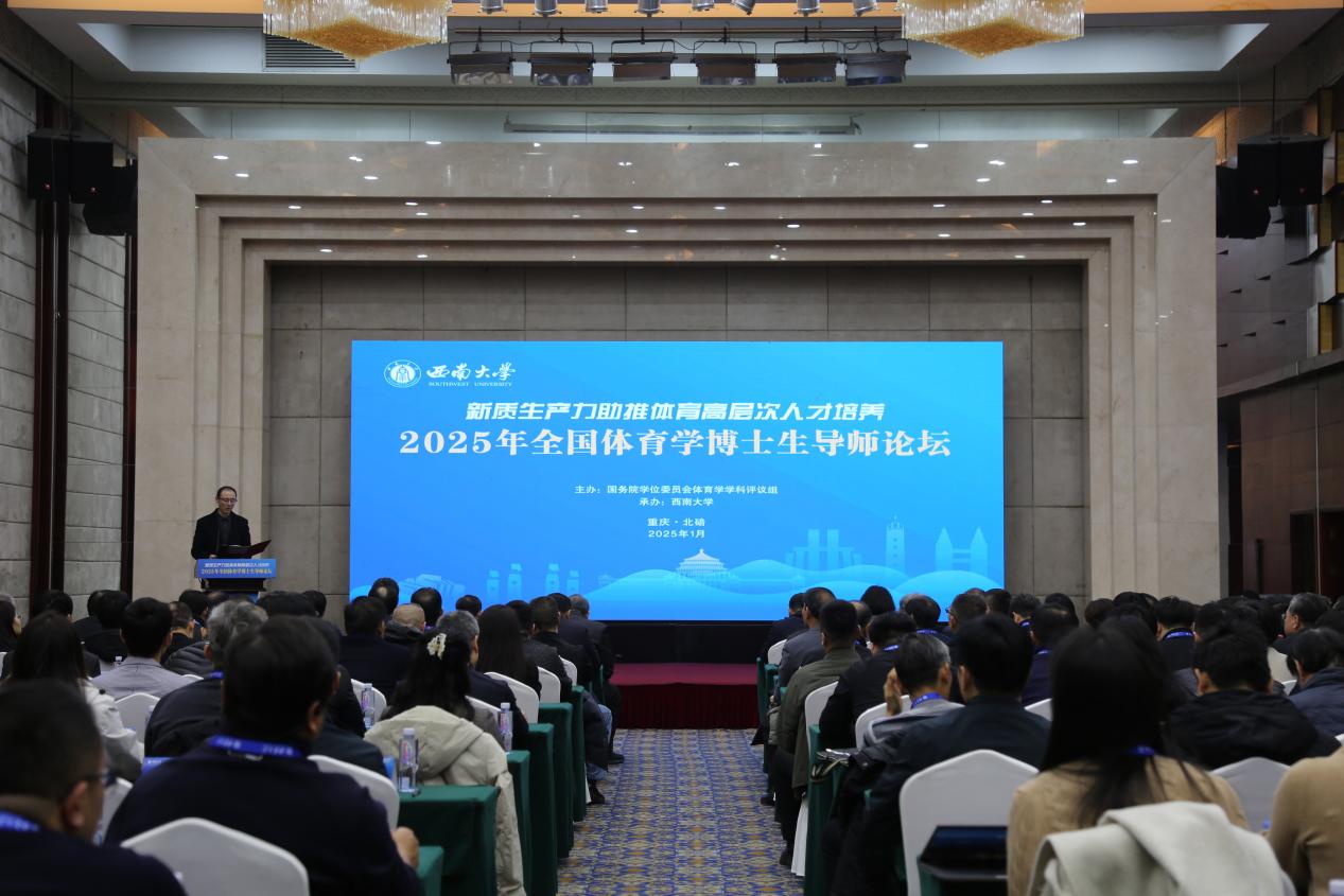 1月4日,2025年全国体育学博士生导师论坛在北碚举行,教育部原党组成员、副部长翁铁慧,国务院学位委员会体育学学科评议组召集人陈佩杰及评议组成员,重庆市委教育工委委员、市教委副主任蒋云芳,学校党委书记张卫国以及全国体育专业院校相关负责人出席,各高校体育学院负责人和专家学者参会。论坛开幕式由学校党委副书记黄杰主持。